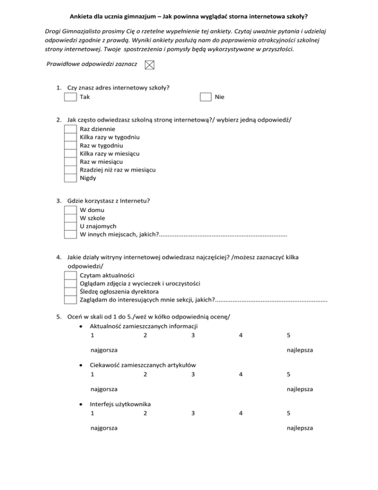 Ankieta dla ucznia gimnazjum