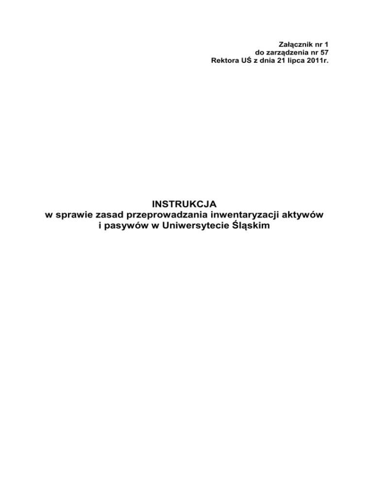 INSTRUKCJA w sprawie zasad przeprowadzania inwentaryzacji