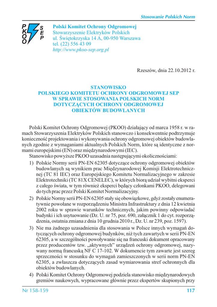 117 Nr 158-159 Polski Komitet Ochrony Odgromowej
