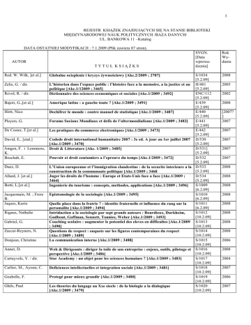 REJESTR KSIĄŻEK ZNAJDUJĄCYCH SIĘ NA STANIE BIBLIOTEKI