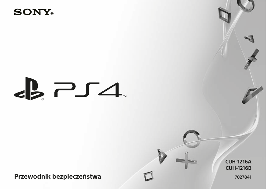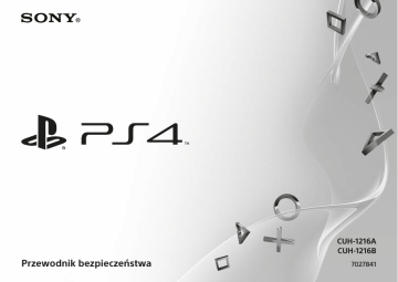 CUH-1216A CUH-1216B Przewodnik bezpieczeństwa 7027841 OSTRZEŻENIA Aby uniknąć porażenia prądem, nie należy otwierać obudowy. Serwisowanie należy pozostawić wykwalifikowanemu personelowi. Uwaga Używanie elementów sterujących, nastaw lub procedur innych niż określone w niniejszym dokumencie może spowodować narażenie na niebezpieczne promieniowanie. Używanie urządzeń optycznych w połączeniu z tym produktem zwiększa zagrożenie dla oczu. CLASS 1 LASER PRODUCT LASER KLASSE 1 PRODUKT To urządzenie zostało zakwalifikowane jako produkt LASEROWY KLASY 1 zgodnie z normą IEC60825-1:2007. 2 To urządzenie zostało przetestowane i uznane za zgodne z ograniczeniami zawartymi w dyrektywie R&TTE przy założeniu, że używany jest kabel o długości 3 metrów lub mniejszej. Nie należy używać kabli dłuższych niż 3 metry. Ten produkt został wyprodukowany przez firmę Sony Computer Entertainment Inc., 1-7-1 Konan Minato-ku Tokio, 108-0075 Japonia lub w jej imieniu. Import do Europy i dystrybucja: Sony Computer Entertainment Europe Ltd, 10 Great Marlborough Street, Londyn, W1F 7LP, Wielka Brytania. Autoryzowanym przedstawicielem odpowiedzialnym za wydawanie i przechowywanie Deklaracji Zgodności jest firma Sony Belgium, bijkantoor van Sony Europe Limited, Da Vincilaan 7-D1, 1935 Zaventem, Belgium. Nieoficjalna deklaracja zgodności z Dyrektywą R&TTE Niniejszym Sony Computer Entertainment Inc. oświadcza, że ten produkt* jest zgodny z zasadniczymi wymaganiami oraz innymi stosownymi postanowieniami Dyrektywy 1999/5/WE. Szczegółowe informacje znaleźć można pod następującym adresem URL: http://www.compliance.sony.de/ Wydajność energetyczna Informacje w oparciu o wymogi UE dotyczące ekoprojektu zawarte w Rozporządzeniu Komisji (UE) nr 801/2013, a także w Inicjatywie Samoregulacyjnej Unii Europejskiej dotyczącej wydajności energetycznej konsol do gier (przyjętej w ramach ostatecznego sprawozdania Unii Europejskiej COM(2015) 178), można znaleźć na stronie: eu.playstation.com/Energyefficiency Ataki wywołane bodźcami świetlnymi (padaczka światłowrażliwa) W przypadku wcześniejszego występowania ataków padaczki przed rozpoczęciem grania należy skontaktować się z lekarzem. Niektóre osoby mogą odczuwać przemęczenie wzroku, zmiany widzenia, migreny, skurcze mięśni, konwulsje lub doznawać uczucia zamroczenia, dezorientacji albo utraty świadomości w wyniku działania migających świateł i innych bodźców wizualnych wyświetlanych na ekranie telewizyjnym lub podczas grania w gry wideo. Jeśli podczas grania wystąpi którykolwiek z powyższych objawów, należy natychmiast przerwać korzystanie z urządzenia i skonsultować się z lekarzem. W przypadku zauważenia poniższych objawów należy natychmiast przerwać granie Poza przypadkami wystąpienia powyższych objawów należy natychmiast przerwać korzystanie z produktu w przypadku odczuwania bólu i zawrotów głowy, mdłości, zmęczenia, objawów podobnych do choroby lokomocyjnej, dyskomfortu lub bólu w jakiejkolwiek części ciała, np. oczach, uszach, ramionach czy stopach. Jeżeli uczucie nie ustępuje, należy skonsultować się w lekarzem. Fale radiowe Fale radiowe mogą zakłócać działanie innych urządzeń elektrycznych oraz urządzeń medycznych (na przykład rozruszników serca), co może spowodować awarię sprzętu lub obrażenia ciała. ˎˎ W przypadku używania rozrusznika serca lub innego urządzenia medycznego przed użyciem funkcji sieci bezprzewodowej należy skonsultować się z lekarzem lub producentem urządzenia medycznego. (Dotyczy połączenia Bluetooth® i sieci WLAN). Nie wolno używać funkcji sieci bezprzewodowej ˎˎ w następujących miejscach: – W obszarach, gdzie korzystanie z sieci bezprzewodowych jest zabronione, na przykład w szpitalach. Podczas używania systemu na terenie placówek medycznych należy przestrzegać obowiązujących tam przepisów. – W pobliżu alarmów przeciwpożarowych, drzwi automatycznych i innego sprzętu działającego automatycznie. PL Obrazy trójwymiarowe Niektóre osoby mogą doznać dyskomfortu (zaczerwienienie, łzawienie, ból lub szczypanie oczu, przemęczenie wzroku lub mdłości) podczas oglądania obrazów wideo 3D lub grania w gry 3D na telewizorach 3D. W razie doznania takiego uczucia należy natychmiast zaprzestać patrzenia w telewizor, dopóki dyskomfort nie ustanie. 3 Generalnie rekomendujemy unikanie zbyt długiego korzystania z systemu PlayStation®4 i robienie 15-minutowych przerw w czasie każdej godziny gry. Długość i częstotliwość przerw może się jednak różnić w zależności od osoby – proszę rób przerwy, które są wystarczająco długie, by ustało uczucie dyskomfortu. Jeżeli symptomy nie ustają, skonsultuj się z lekarzem. Wzrok małych dzieci (szczególnie poniżej 6 roku życia) ciągle się rozwija. Skonsultuj się z pediatrą Twojego dziecka lub optometrą zanim pozwolisz dziecku oglądać obrazy wideo w 3D lub grać w gry 3D. Dorośli powinni dopilnować tego, by dzieci przestrzegały powyższych zaleceń. Oprogramowanie systemowe Aktualizacja oprogramowania systemu PS4™ upraszcza obsługę i pozwala korzystać z dodatkowych funkcji oraz wyższego poziomu zabezpieczeń. Zawsze aktualizuj oprogramowanie do najnowszej wersji • Jeśli nie możesz zaktualizować go przez Internet, skorzystaj z płyty z grą albo z urządzenia pamięci masowej USB. Dokładne informacje znajdziesz w witrynie aktualizacji ( patrz tylna okładka). • Korzystając z tego systemu PS4™, wyrażasz zgodę na postanowienia umowy licencyjnej oprogramowania systemowego firmy Sony Computer Entertainment Inc. Więcej informacji na ten temat można znaleźć na stronie http://www.scei.co.jp/ps4-eula/. Wypożyczanie i komercyjne użycie tego produktu jest zabronione. 4 Spis treści OSTRZEŻENIA.........................................................2 Środki ostrożności..................................