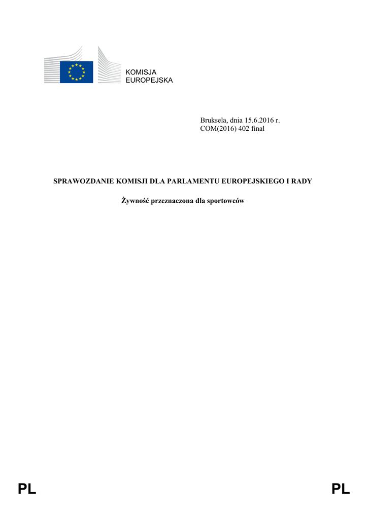 KOMISJA EUROPEJSKA Bruksela, dnia 15.6.2016 r. COM(2016) 402 final SPRAWOZDANIE KOMISJI DLA PARLAMENTU EUROPEJSKIEGO I RADY Żywność przeznaczona dla sportowców PL PL Spis treści 1. Wprowadzenie.............................................................................................................. 3 2. Rynek żywności dla sportowców ................................................................................. 4 2.1. Produkty obecne na rynku, rozmiary rynku, jego wartość i ceny ................................ 4 2.2. Struktura rynku, kanały dystrybucji ............................................................................. 5 2.3. Wprowadzanie żywności dla sportowców do obrotu................................................... 6 3. Świadomość konsumentów i zwyczaje konsumpcyjne................................................ 6 4. Przegląd prawa właściwego w odniesieniu do żywności dla sportowców do dnia 20 lipca 2016 r. ................................................................................................................................ 8 4.1. Żywność dla sportowców sklasyfikowana jako „środki spożywcze specjalnego przeznaczenia żywieniowego” ..................................................................................... 8 4.2. Żywność dla sportowców sklasyfikowana jako żywność do normalnego spożycia i objęta regulacją odpowiednich przepisów horyzontalnych prawa żywnościowego .... 9 5. Zmiany wprowadzone rozporządzeniem w sprawie żywności specjalnego przeznaczenia ............................................................................................................................. 9 6. Krótki opis kwestii związanych z żywnością dla sportowców po dniu 20 lipca 2016 r. 10 6.1. Bezpieczeństwo żywności.......................................................................................... 10 6.2. Informowanie konsumentów...................................................................................... 11 6.3. Kwestie dotyczące składu .......................................................................................... 12 6.4. Kwestie dotyczące powiadomienia wymaganego przez właściwe organy krajowe .. 13 6.5. Inne kwestie ............................................................................................................... 14 7. Streszczenie stanowisk właściwych organów krajowych i zainteresowanych stron . 14 8. Podsumowanie ........................................................................................................... 16 2 SPRAWOZDANIE KOMISJI DLA PARLAMENTU EUROPEJSKIEGO I RADY Żywność przeznaczona dla sportowców 1. WPROWADZENIE Niniejsze sprawozdanie zostało przygotowane w celu wypełnienia obowiązku nałożonego na Komisję na mocy art. 13 rozporządzenia Parlamentu Europejskiego i Rady (UE) nr 609/2013 w sprawie żywności przeznaczonej dla niemowląt i małych dzieci oraz żywności specjalnego przeznaczenia medycznego i środków spożywczych zastępujących całodzienną dietę, do kontroli masy ciała (zwanego dalej „rozporządzeniem w sprawie żywności specjalnego przeznaczenia”)1. Zgodnie z tym artykułem Komisja jest zobowiązana do przedstawienia Parlamentowi Europejskiemu i Radzie, po konsultacji z Europejskim Urzędem ds. Bezpieczeństwa Żywności (EFSA), sprawozdania na temat konieczności – o ile takowa zachodzi – przyjęcia przepisów dotyczących żywności przeznaczonej dla sportowców (zwanej dalej „żywnością dla sportowców”). Wymóg złożenia niniejszego sprawozdania jest powiązany z uchyleniem z dniem 20 lipca 2016 r. przez rozporządzenie w sprawie żywności specjalnego ram dotyczących środków spożywczych specjalnego przeznaczenia żywieniowego 2 . Ramy te zostały utworzone na mocy dyrektywy Rady3 w 1989 r. i uzupełnione przez przekształconą dyrektywę 2009/39/WE. Żywność dla sportowców może obecnie zostać sklasyfikowana 1) jako „środki spożywcze specjalnego przeznaczenia żywieniowego” na mocy dyrektywy 2009/39/WE lub 2) jako żywność do normalnego spożycia regulowana odpowiednimi przepisami horyzontalnymi prawa żywnościowego. Rozporządzenie w sprawie żywności specjalnego przeznaczenia nie obejmuje swoim zakresem żywności dla sportowców, ponieważ skupia się na środkach spożywczych dla niektórych szczególnie wrażliwych grup konsumentów. Ponieważ nie będzie więc możliwości sklasyfikowania żywności dla sportowców jako środka spożywczego specjalnego przeznaczenia żywieniowego, począwszy od dnia 20 lipca 2016 r. ten rodzaj żywności będzie objęty wyłącznie regulacją przepisów horyzontalnych prawa żywnościowego. W niniejszym sprawozdaniu uwzględniono potencjalne skutki zmiany statusu żywności dla sportowców. Zostało ono oparte na badaniu rynku przeprowadzonym przez Food Chain Evaluation Consortium (FCEC) 4 między styczniem 2015 r. a czerwcem 2015 r. Badanie to zawiera bardziej szczegółowe informacje dotyczące wniosków przedstawionych w niniejszym sprawozdaniu. W ramach przygotowywania 1 2 3 4 Dz.U. L 181 z 26.1.2013, s. 35. Dz.U. L 124 z 20.5.2009, s. 21. Dyrektywa Rady w sprawie zbliżenia ustawodawstw państw członkowskich odnoszących się do środków spożywczych specjalnego przeznaczenia żywieniowego, Dz.U. L 186 z 30.6.1989, s. 27. Badanie na temat żywności przeznaczonej dla sportowców – sprawozdanie końcowe – Food Chain Evaluation Consortium (FCEC): http://ec.europa.eu/food/safety/labelling_nutrition/special_groups_food/sportspeople/index_en.htm. 3 niniejszego sprawozdania przeprowadzono konsultację z właściwymi organami krajowymi i innymi zainteresowanymi stronami. Komisja Europejska zasięgnęła opinii Europejskiego Urzędu ds. Bezpieczeństwa Żywności (EFSA), który zapewnił wsparcie naukowe i techniczne dotyczące żywności dla sportowców 5 . Urząd ten dokonał zestawienia opinii naukowych w dziedzinie żywienia i