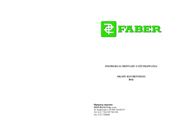 INSTRUKCJA MONTAŻU I UŻYTKOWANIA OKAPU KUCHENNEGO Brio Wyłączny importer: DOM BIANCO Sp. z o.o. Al. Krakowska 5, 05-090 RASZYN Tel. 0-22 7201199 7201198 Fax. 0-22 7200688 - 12 - -1- SPIS TREŚCI Część I Montaż 1. Zagadnienia ogólne 2. Elementy składowe okapu 3. Zasady bezpieczeństwa pracy 4. Montaż okapu 4.1. Mocowanie uchwytów ściennych 4.2. Mocowanie korpusu okapu 4.3. Podłączenia elektryczne 4.4. Przystosowanie do pracy w wersji wyciąg lub pochłaniacz 4.5. Mocowanie maskownicy komina Część II Użytkowanie i obsługa 1. Zasady bezpieczeństwa 2. Zasady działania okapu 3. Obsługa 3.1. Metalowe filtry przeciwtłuszczowe 3.2. Filtr węglowy 3.3. Zespół oświetleniowy 3.4. Czyszczenie -2- - 11 - CZĘŚĆ I MONTAŻ 1. ZAGADNIENIA OGÓLNE Zakupiony przez Państwa okap kuchenny jest przeznaczony do mocowania bezpośrednio do ścian pomieszczenia kuchennego nad urządzeniami do gotowania. Może być wykorzystywany zarówno w wersji wyciąg - do usuwania zanieczyszczonego powietrza na zewnątrz pomieszczenia kuchennego, jak i wersji pochłaniacz - z nawrotem oczyszczonego powietrza do pomieszczenia kuchennego. Ze względu na masę okapu oraz jego złożoność zaleca się, aby jego instalacji i montażu dokonywała osoba odpowiednio przeszkolona i posiadająca doświadczenie w tego typu pracach. Producent i importer nie ponoszą żadnej odpowiedzialności za straty materialne i szkody w zdrowiu osób spowodowane nieprzestrzeganiem zaleceń podanych w niniejszej instrukcji. 2. ELEMENTY SKŁADOWE OKAPU W skład standardowej wersji okapu (wyciąg) wchodzą następujące elementy i podzespoły (ryc. 1): • korpus okapu “C”, w skład którego wchodzą elementy sterowania, zespół oświetleniowy oraz zespół silnikowy, • komin teleskopowy składający się z części dolnej „I” oraz górnej „S’’ • kratka wylotu powietrza “ A’’ – 125mm, • reduktor „K” 150/120 mm • torebka montażowa zawierająca: uchwyt „1’’ do mocowania korpusu, 2 zaczepy „2’’mocujące komin, śruby, kołki. na zamówienie : płyta przeciwtłuszczowa F 3. ZASADY BEZPIECZEŃSTWA PRACY 1. W przypadku wykorzystywania okapu w wersji wyciąg nie może być on podłączony do kanałów wentylacyjnych stosowanych do usuwania spalin z urządzeń zasilanych energią inną niż elektryczna takich, jak piece centralnego ogrzewania lub bojlery do podgrzewania wody. Przed przystąpieniem do montażu okapu kuchennego należy przewidzieć ewentualne trudności, jakie mogą powstać podczas montażu i użytkowania urządzenia. Prace montażowe powinny być wykonywane przez odpowiednio przeszkolony i wykwalifikowany personel. Sposób podłączenia urządzenia do instalacji wentylacyjnych i elektrycznych musi odpowiadać obowiązującym przepisom prawa i normom, a w szczególności postanowieniom rozporządzenia Ministra Infrastruktury z dnia 12 kwietnia 2002 r w sprawie warunków technicznych, jakim powinny odpowiadać budynki i ich usytuowanie (Dz. U. nr 75 z 2002 r. poz. 690). - 10 - -32. Przed podłączeniem okapu do źródła zasilania należy upewnić się, czy napięcie i częstotliwość prądu w sieci odpowiada wartościom podanym na tabliczce znamionowej okapu. 3. Zaleca się podłączanie okapu do źródła zasilania za pośrednictwem dwubiegunowego wyłącznika, w którym odstępy między stykami w pozycji “wyłączony” wynoszą co najmniej 3 mm. 4. Instalacja elektryczna do której podłączany jest okap, oraz okap muszą być uziemione zgodnie z obowiązującymi przepisami. 5. Odległość między spodnią płytą okapu (metalowymi filtrami przeciwtłuszczowymi) a urządzeniem do gotowania powinna wynosić co najmniej 65 cm w przypadku kuchenek elektrycznych (ceramicznych i klasycznych) i 70 cm w przypadku kuchenek gazowych. 6. Pod okapem nie wolno przyrządzać potraw flambowanych (tzw. “płonących”). 7. Nie wolno pozostawiać pod okapem na kuchni bez dozoru otwartych patelni i naczyń podczas przygotowywania potraw, gdyż ulatniające się tłuszcze i oleje mogą ulec zapaleniu. 8. Przed przystąpieniem do jakichkolwiek czynności związanych z czyszczeniem lub obsługą techniczną okapu należy urządzenie odłączyć od źródła zasilania. 9. Jeżeli w pomieszczeniu, w którym jest zainstalowany okap, jest użytkowane inne urządzenie działające na zasadzie spalania paliwa, np. piece centralnego ogrzewania, to muszą to być to tzw. urządzenia o zbilansowanym przepływie lub pobierające powietrze spoza pomieszczenia kuchennego. Jeżeli używane są urządzenia innego typu, niż wymienione, to należy zapewnić dopływ do pomieszczenia odpowiedniej ilości powietrza. 4. MONTAŻ OKAPU Aby usprawnić montaż okapu proponujemy przestrzegać następującej kolejności czynności montażowych: 1) instalacja uchwytów mocujących, 2) instalacja korpusu okapu, 3) podłączenie do źródła zasilania i kontrola funkcjonowania, 4) dostosowanie do pracy jako wyciąg lub pochłaniacz, 5) instalacja teleskopowej maskownicy komina. -44.1. Mocowanie uchwytów ściennych ( listwy mocującej - ryc. 2a –b ) 1. Na ścianie narysować pionową linię od środka płyty grzewczej (kuchni) do stropu. Posłuży ona do ustalenia symetrycznego zawieszenia okapu. 2. Przykręcić do ściany uchwyty naścienne “1” Narysować na ścianie poziomą linię zachowując następujące zasady: a) w przypadku instalowania płyty przeciwtłuszczowej – rys. 2a, d=300 mm + H, gdzie H jest wysokością widocznej części płyty przeciwtłuszczowej (płyty mogą mieć różną wysokość); prawidłową wartość otrzymujemy na podstawie pomiaru wysokości mocowanej płyty, b) w przypadku montażu okapu bez płyty przeciwtłuszczowej – rys. 2b, minimalna wartość d=950 mm; na linii poziomej zaznaczmy środki dwóch otworów do mocowania uchwytu “1” w odległości 80 mm od pionowej linii wyznaczającej oś. 3. Mocowanie uchwytów naściennych “2”: a) jeden z uchwytów umi