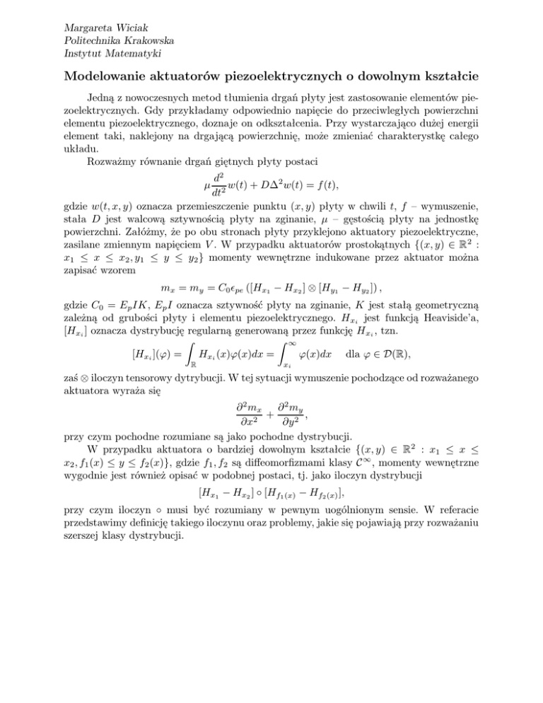 zależną od grubości płyty i elementu piezoelektrycznego. H xi jest funkcją Heaviside’a,