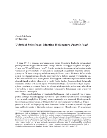 U źródeł Seinsfrage. Martina Heideggera Pytanie i sąd - Filo