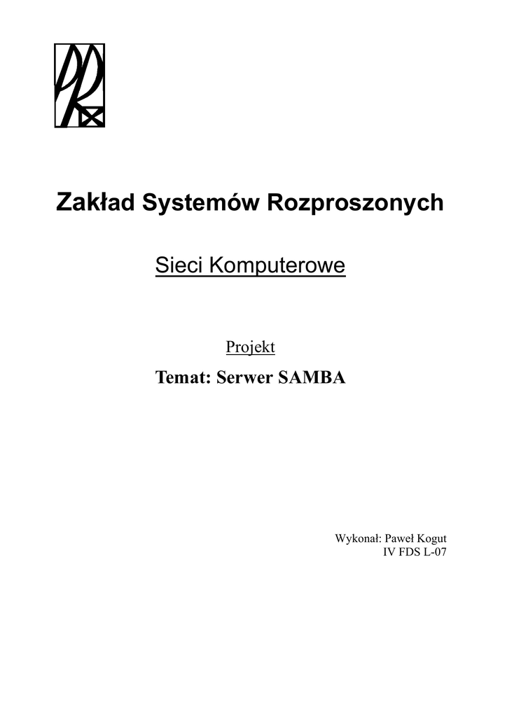 Dlatego ja w mojej pracy spróbuję przedstawić wiadomości dotyczące serwera Samby.