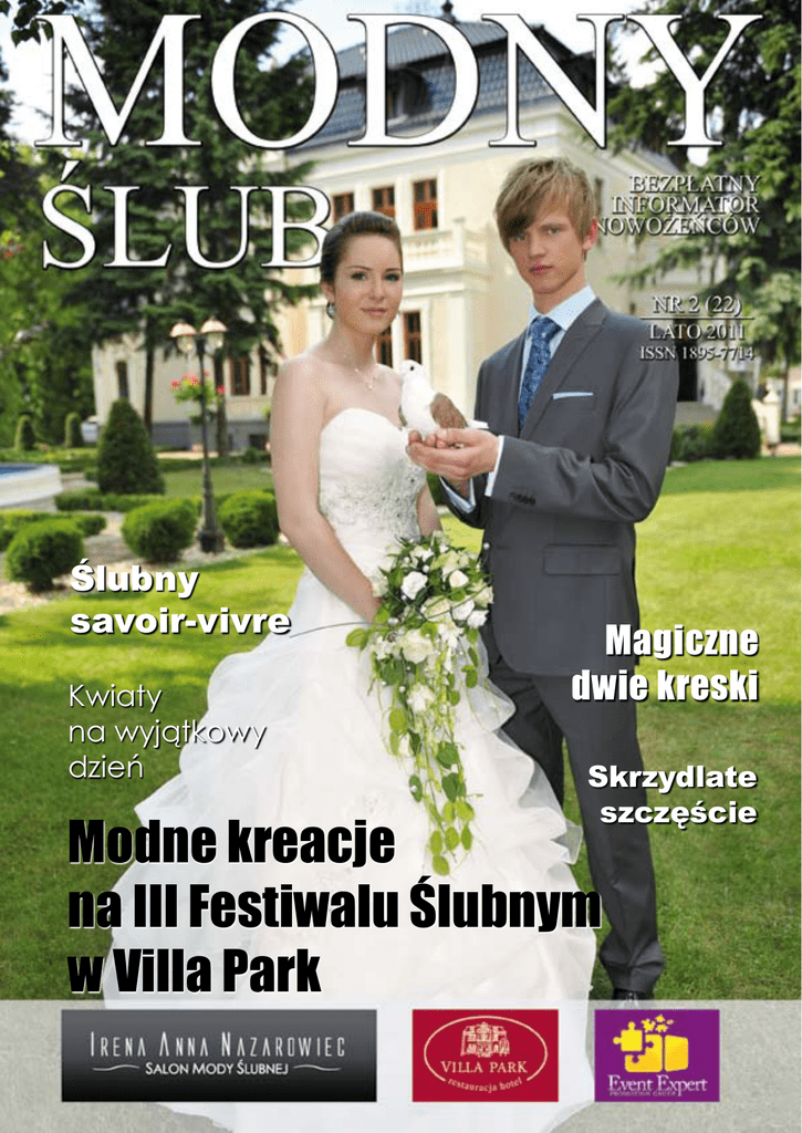 Ślubny savoir-vivre Kwiaty na wyjątkowy dzień Magiczne dwie kreski Skrzydlate szczęście Modne kreacje na III Festiwalu Ślubnym w Villa Park MODNY ŚLUB 2 Nr 2 (22) Lato 2011 www.modnyslub.opole.pl Ewelina Rak i Robert Klimek modele na pokazie III Festiwalu Ślubnego w Villa Park w Opolu Na okładce: Nr 2 (22) Lato 2011 Sponsorzy okładki: Salon Mody Ślubnej IRENA ANNA NAZAROWIEC Opole ul. Sienkiewicza 12-14/1B Hotel i Restauracja VILLA PARK Opole ul. Czogały 1 Agencja Promocyjna EVENT EXPERT www.eventexpert.com.pl Adres wydawcy przyjmowanie ogłoszeń: ABM Agencja Reklamy Multimedialnej 45-560 OPOLE ul. Jagiellonów 72 tel. 77 423 03 36 fax 77 423 03 37 www.modnyslub.opole.pl e-mail: [email protected] Redaktor Naczelny: Andrzej Marcinkowski Opracowanie graficzne i skład: Tomasz Kulka OD REDAKCJI Sezon weselny w pełni i choć niektórzy przepowiadają, że i tę branżę dotknął kryzys, to chyba nie mają racji, bo to tylko ilość usługodawców ciągle się powiększa. Wokół powstaje coraz więcej nowych lokali weselnych, firm cateringowych, a fotografem i filmowcem jest już chyba co trzeci obywatel Rzeczypospolitej. Trzeba przyznać, że cały ten „wyścig” z jednej strony przyczynia się do podnoszenia poprzeczki wśród usługodawców, z drugiej zaś wyraźnie wyłania firmy przodujące z grona konkurencji. Dzisiaj miarą profesjonalizmu staje się jakość usług, a cena w większości przypadków jest jej wyznacznikiem. Zaczynają to mocno doceniać konsumenci weselnych usług i coraz lepiej radzą sobie z dokonaniem odpowiedniego wyboru. Cieszy mnie ogromnie fakt, iż kwartalnik MODNY ŚLUB jest jednym z najważniejszych narzędzi branych pod uwagę przy wyborze firm na wesele. Idąc za tym głosem organizujemy kolejny plebiscyt na najbardziej popularną firmę w branży ślubnej spośród tych, jakie prezentujemy na naszych łamach. O szczegółach więcej wewnątrz numeru. Bardzo budującym jest również to, iż coraz częściej jesteśmy proszeni o patronat medialny i wsparcie organizacyjne przy powstających lokalnych pokazach, ga- MODNY ŚLUB lach i festiwalach ślubnych. Popularyzacja, konsolidacja i wzajemny lobbing między wyrazistymi podmiotami na rynku usług weselnych to piękna i chwalebna inicjatywa, która pomaga potencjalnym klientom wyłonić firmy wychodzące naprzeciw zapotrzebowaniom klientów, prężne w tym co robią spośród całego spektrum podmiotów o mocno zróżnicowanym poziomie usług. Z reguły na tego typu imprezy zapraszane są wiodące firmy, sprawdzone i o gwarantowanej jakości. O tym również więcej znajdziecie Państwo wewnątrz numeru. Dla tych, którzy nie mają zbyt wiele czasu na odwiedzanie takich imprez, ani na żmudne przedślubne przygotowania zapraszam do lektury na temat agencji eventowych, które są coraz bardziej popularne na naszym rynku. Dzisiaj w czasach karierowiczów z charakterem „Dyzmy”, rzucających wyzwanie światu z portfelem dotacji unijnych, ciężko jest zwłaszcza młodym ludziom właściwie ocenić sytuację, czy wybrać rzetelną firmę na własną uroczystość. Niech Modny Ślub służy im pomocą i będzie stróżem jakości oraz narzędziem pomagającym w budowaniu własnej drogi we dwoje. Red. nacz. Andrzej Marcinkowski Dział Reklamy: Dagna Janas Paweł Mikosek Korekta: Katarzyna Kassak Webmaster: Tomasz Kulka Prawo do przedruku lub innego wykorzystania wzorów graficznych zamieszczonych w magazynie Modny Ślub - zastrzeżone. Redakcja nie odpowiada za treść publikowanych ogłoszeń. Redakcja zastrzega sobie prawo do zmiany nadsyłanych tekstów. Wydawca ma prawo odmówić zamieszczania ogłoszenia i reklamy, jeżeli ich treść jest sprzeczna z linią programową wydawnictwa bądź charakterem pisma. (art. 36 pkt 4 prawa prasowego) Projekty ogłoszeń wykonanych przez wydawcę pozostają jego własnością. Nakład: 7000 egz. www.modnyslub.opole.pl 3 WYSYŁAJ SMS-Y NAGRODY MODNY ŚLUB ZGARNIAJ Nr 2 (22) Lato 2011 PLEBISCYT MODNEGO ŚLUBU WYSYŁAJ SMS-Y Lp NAZWA FIRMY KOD SMS 17. SALOMON - Opole GALARH17 18. SALVE - Głogówek GALARH18 19. STAROPOLSKI GOŚCINIEC - Zdziechowice GALARH19 Redakcja Kwartalnika MODNY ŚLUB zaprasza wszystkich zainteresowanych do udziału w WIELKIM PLEBISCYCIE mającym na celu promocję przedsiębiorczości w branży usług ślubno-weselnych, a także tworzenie sprzyjającego klimatu dla podejmowania nowych inicjatyw w tym zakresie. Plebiscyt trwać będzie przez pięć miesięcy od 6.06 - 31.10.2011 roku i przeprowadzony zostanie w formie konkursu SMS, w którym głosy oddawać będą mogli wszyscy, którzy znają i korzystali, bądź będą korzystać z usług danego przedsiębiorcy. Szczegółowy regulamin Plebiscytu dostępny jest na stronie internetowej GALARH20 21. SZARA WILLA - Opole GALARH21 22. URBAN - Polska Nowa Wieś GALARH22 23. VILLA PARK - Opole GALARH23 24. ZACISZE - Turawa i Gali Modnego Ślubu. Możesz zostać ZAJAZD GÓRALSKI POD NIEDŹWIEDZIEM Sponsorem, Partnerem, Mecenasem 25. - Dębska Kuźnia lub Patronem. Szczegółowe informacje na temat 26. ZAJAZD KAROLINKA - Gogolin sponsoringu dostępne pod nr tel.: 27. ZAMKOWY MŁYN - Krapkowice 774 230 336 oraz kom. 602 747 631 GALARH24 GALARH25 GALARH26 GALARH27 RESTAURACJE Aby wziąć udział w Plebiscycie wystarczy wysłać sms z kodem firmy (np. GALAXX01) na numer: 72480 Koszt jednego sms 2,46 zł z VAT. WYKAZ KATEGORII ORAZ FIRM I PRZYDZIELONYCH IM KODÓW SMS www.modnyslub.opole.pl. Zwieńczeniem Plebiscytu będzie WIELKA GALA MODNEGO ŚLUBU, która odbędzie się w listopadzie br. Na Gali zaprezentujemy najlepszych pięć firm w każdej kategorii i podsumujemy wyniki plebiscytu. Podczas Gali zostaną wręczone statuetki Modnego Ślubu, dyplomy i inne wyróżnienia. Spośród osób wysyłających sms-y wyłonimy również zwycięzców konkursu. Liczba wysłanych SMS-ów zwiększa szanse wygranej. 20 STYLOWA - Namysłów RESTAURACJE Z HOTELEM Nad częścią konkursową czuwać będzie k