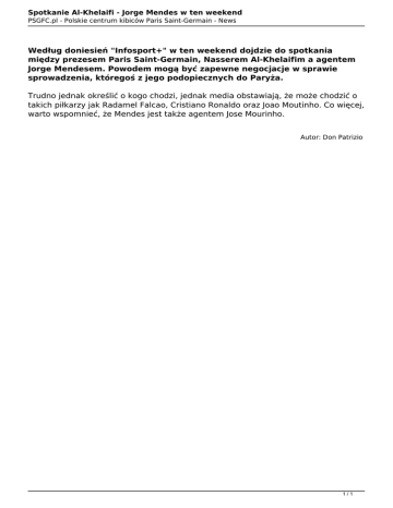 Spotkanie Al-Khelaifi - Jorge Mendes w ten weekend