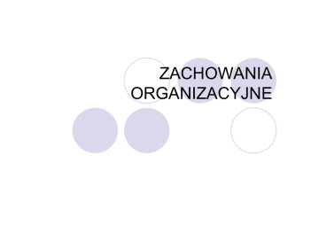 ZACHOWANIA ORGANIZACYJNE Zachowania organizacyjne to sposoby postępowania ludzi w zbiorowościach, przebiegają na trzech poziomach: indywidualnym (pierwszy poziom zachowań) – zachowania pojedynczych osób grupowym (drugi poziom zachowań) – zachowania ludzi w zbiorowościach (grupach, zespołach) międzyorganizacyjnym (trzeci poziom zachowań) – to aspekty wpływające na zachowania całych organizacji PRZEDMIOT ZACHOWAŃ ORGANIZACYJNYCH Przedmiotem nauki o zachowaniach w organizacji jest badanie: postaw zachowań ludzi w obrębie organizacji. Przedmiotem badań ZWO są następujące rodzaje zachowań: Wydajność Absencja Fluktuacja zatrudnienia Wydajność – ilość i jakość produktów wytwarzanych przez pracownika Wydajność pracownika zależy też od zachowań obywatelskich w organizacji (m.in.: unikanie konfliktów, pozytywny stosunek do grupy współpracowników i do organizacji, pomaganie innym członkom grupy). Przedmiotem ZWO jest także zadowolenie z pracy, które jest elementem postawy pracowników (pozytywnie wpływa na wydajność). Organizacja jako góra lodowa S. P. Robbins, D. A. De Cenzo, Podstawy zarządzania, PWE, Warszawa 2002, s. 359. ZWO to nauka o interdyscyplinarnym. Wkład najważniejszych prezentuje schemat: charakterze dyscyplin Psychologia Socjologia Uczenie się; Motywacja; Osobowość; Szkolenie; Indywidualne podejmowanie decyzji; Skuteczność przywództwa; Zadowolenie z pracy; Oceny efektywności; Pomiar postaw; Projektowanie pracy; Stres w pracy; Dynamika grup; Zespoły robocze; Komunikacja; Pozycja; Władza; Konflikt; Teoria organizacji formalnej; Biurokracja; Zmiany w organizacji; Kultura organizacji; Psychologia społeczna Politologia Badanie zachowań Grupa Zmiana zachowań; Zmiana postaw; Komunikacja; Grupowe podejmowanie decyzji; Procesy grupowe; Porównawcze wartości; Porównawcze postawy; Analiza międzykulturowa; Antropologia Jednostka Kultura organizacji; Otoczenie organizacji; Konflikt; Rozgrywki wewnątrz organizacji; Władza; System organizacji w organizacji Psychologia – dostarcza opisu przyczyn i warunków określonego postępowania człowieka. Zajmuje się wpływem wszystkich podsystemów organizacji na zachowania pracownicze. Socjologia – bada systemy społeczne, w których jednostki odgrywają swoje role; bada związki między ludźmi; zachowania grupowe w organizacjach. Psychologia społeczna – łączy koncepcje psychologii i socjologii; wyjaśnia jak grupa może wpływać na swoich członków, jak przebiega komunikacja wewnątrz grupy oraz jak może przebiegać proces grupowego podejmowania decyzji. Antropologia – pomaga w zrozumieniu różnic między podstawowymi wartościami, postawami i zachowaniami ludzi w rozmaitych kulturach i organizacjach; w dobie globalizacji każda organizacja ociera się o zróżnicowanie kulturowe i narodowościowe. Politologia – zajmuje się problemami władzy i wpływu. gra sił w organizacji, Główne cele zachowań w organizacji: Wyjaśnianie – szukanie odpowiedzi na pytanie, dlaczego dana osoba lub grupa osób coś zrobiła. Przewidywanie – zmierza do ustalenia, jakie będą wyniki określonego działania Sprawowanie kontroli – sprawowanie kontroli nad ludźmi techniki ułatwiające Postawy a zachowania Postawy – zespół przekonań i odczuć w odniesieniu do określonych idei, sytuacji lub innych ludzi. Postawy, są mechanizmem, za pomocą którego ludzie dają wyraz swoim odczuciom. Postawa to względnie trwały pogląd, przekonanie, odczucie i tendencja w zachowaniu się w stosunku do innych osób, grup, pomysłów, spraw lub celów. Postawa to bieżący punkt widzenia człowieka w stosunku do kogoś, np. przełożonego, podwładnego, kolegi, sprzedawcy lub czegoś, np. produktu, reklamy czy firmy. Wymiary (cechy) postawy: Znak postawy Siła postawy (natężenie) Zakres postawy Trwałość postawy Zwartość postawy Komponenty postaw: element emocjonalny odzwierciedla uczucia, nastroje i emocje, które wzbudza w nas obiekt, do którego odnosi się postawa; element poznawczy – wynika z wiedzy, jaką ma dana osoba o kimś lub o czymś; element intencjonalny (behawiorystyczny) – wyraża zamiar określonego postępowania, działania lub jego zmianę w stosunku do danego obiektu. Dysonansem poznawczym nazywamy niezgodność dwóch lub więcej postaw, bądź konflikt między postawami jednostki, a jej zachowaniem. Dysonans poznawczy iako mechanizm regulujący postawy W celu przyjemnego potwierdzenia słuszności własnych poglądów aktywnie dążymy do uzyskiwania informacji zgodnych z własnymi postawami, a unikamy informacji sprzecznych Dysonans poznawczy powstaje gdy występuje niezgodność dwóch lub więcej postaw konkretnej osoby lub miedzy jej postawami i postępowaniem. Redukcja dysonansu dokonuje się przez: zmianę zachowania zmianę postawy przekonanie o niewielkim negatywnego zachowania znaczeniu Postawy związane z pracą: Zadowolenie lub niezadowolenie z pracy – postawa, która odzwierciedla zakres, w jakim dana osoba czerpie zadowolenie ze swej pracy lub znajduje w niej spełnienie. Postawa ta kształtuje się pod wpływem czynników osobowych, tj. potrzeby i aspiracje danej osoby, a także czynników grupowych i organizacyjnych, np. warunki pracy, polityka pracy. Zaangażowanie w sprawy organizacji – postawa odzwierciedlająca utożsamianie się danej osoby z organizacją i przywiązanie do niej.