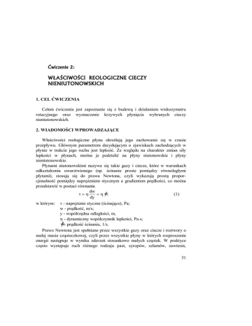 Ćw. 2 - Właściwości reologiczne cieczy nieniutonowskich