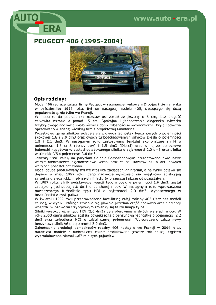 Opis rodziny: PEUGEOT 406. - AUTO-ERA