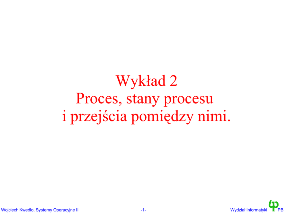 Wykład 2 Proces, stany procesu i przejścia pomiędzy nimi.