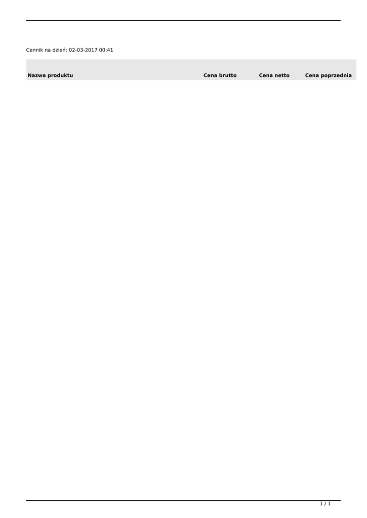 Cennik na dzień: 02-03-2017 00:41 Nazwa produktu Cena brutto Cena netto Cena poprzednia 1/1 Powered by TCPDF (www.tcpdf.org)