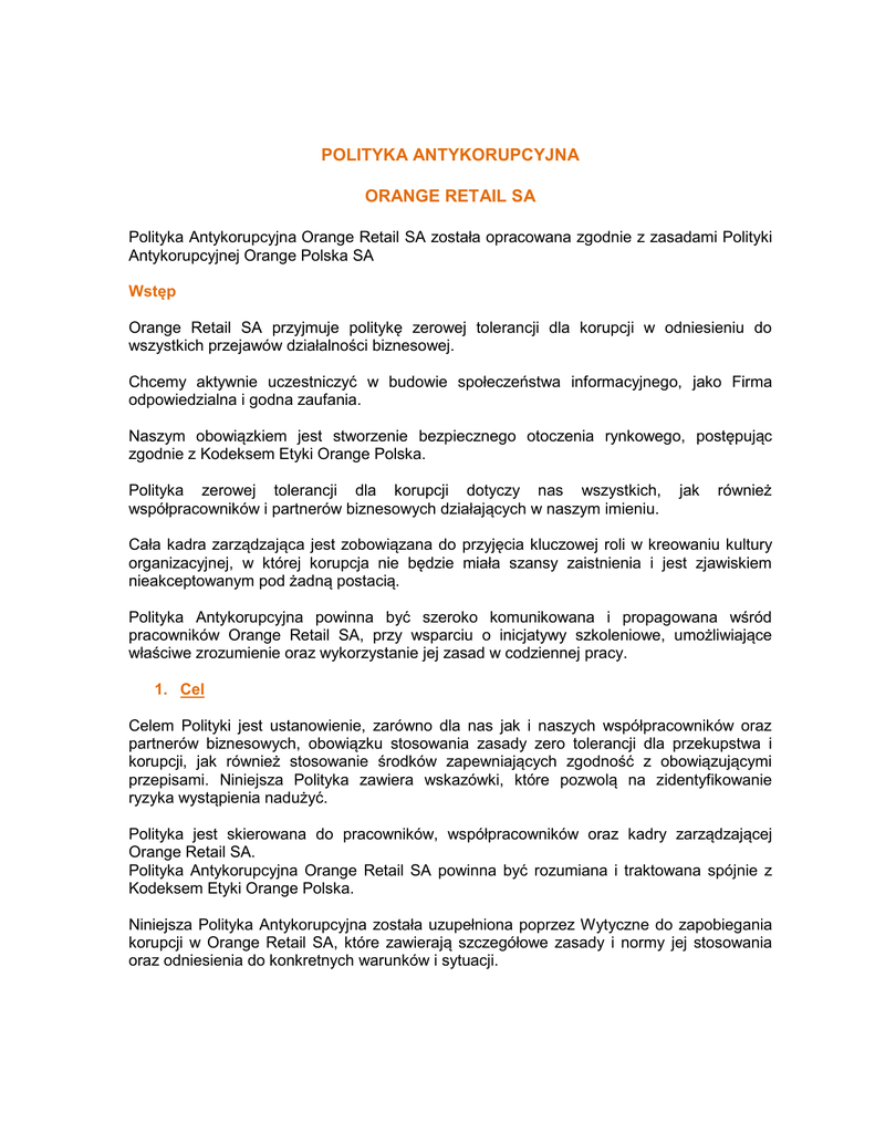 POLITYKA ANTYKORUPCYJNA ORANGE RETAIL SA