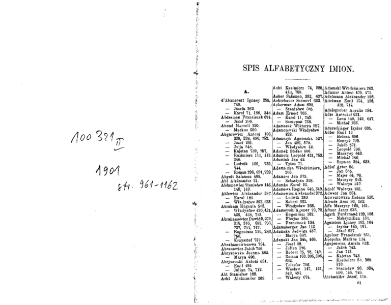 Aoker Salamon, 382, 827. Adelmann Aleksander 198.