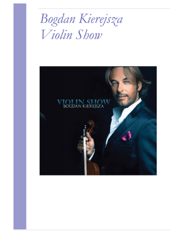 Bogdan Kierejsza Violin Show Str. 2 Bogdan Kierejsza Violin Show Bogdan Kierejsza Bogdan Kierejsza - absolwent Warszawskiego Uniwersytetu Muzycznego im. Fryderyka Chopina w Warszawie, który ukończył w klasie skrzypiec wybitnego polskiego wirtuoza prof. Konstantego Andrzeja Kulki. W latach 1993-2004 uzupełniał swoją edukację muzyczną uczestnicząc w międzynarodowych kursach muzycznych m. in. w Holandii, USA, Niemczech i w Polsce. Od wielu lat jest koncertującym skrzypkiem. Jako kameralista i solista, koncertował niemalże na wszystkich kontynentach. Prezentując utwory polskich kompozytorów, dał serię koncertów w wielu krajach Europy. Za krzewienie kultury polskiej, od Ministra Kultury i Sztuki otrzymał stypendium artystyczno-naukowe. W Polsce, często koncertuje z Królewską Orkiestrą Symfoniczną przy Pałacu w Wilanowie. Jest również multiinstrumentalistą i kompozytor em muzyki do filmów r eklamowych,dokumentalnych, programów telewizyjnych oraz ilustracji muzycznych do różnego rodzaju form wizyjnych. Współpracuje z Telewizją Polską i Polskim Radiem oraz firmami fonograficznymi „Universal Music",„SonyBMG" czy „Magnetic Records”. Ma na swoim koncie muzykę do rozmaitych spektakli tanecznych i układów choreograficznych, a utwory w jego aranżacjach lub powstałe w wyniku współpracy artystycznej wykonywali i wykonują znani artyści polskiej sceny muzycznej. W 2011 roku stworzył projekt muzyczny „Violin Show”, będący współczesnymi interpretacjami tang, czardaszy,muzyki filmowej i repertuaru klasycznego oraz własnych kompozycji. Elementem wiodącym są tu skrzypce z towarzy- szeniem orkiestry, wzbogacone brzmieniem muzyki pop a nawet rock. Repertuar koncertów to podróż po różnych miejscach, zakątkach świata, epokach i stylach muzycznych, ukazujących wielobarwność skrzypiec w bardzo różnych odsłonach, mieszających style, brzmienia i kultury. Łączy tradycję z nowoczesnością, elegancję z szaleństwem, flamenco z orientalem, klasykę z rockiem, Polskę ze światem. Bogdan Kierejsza podczas koncertów zabawnie opowiada o świecie muzyki, wybitnych kompozytorach i granych przez siebie utworach, a koncerty cieszą się dużym uznaniem publiczności. W sierpniu 2012 roku wystąpił na Festiwalu im. Jana Kiepury w Krynicy-Zdroju, prezentując publiczności repertuar z projektu „Violin Show”, a oto recenzja z tego koncertu zamieszczona w miesięczniku „Twoja Muza”: „Bez wątpienia jedną z czołowych gwiazd i ulubieńcem publiczności tegorocznego festiwalu był Bogdan Kierejsza, nie tylko świetny skrzypek, ale również ceniony kompozytor, aranżer i showman. Jego pierwszy koncert okazał się wieczorem świetnej muzyki, w znakomitym wykonaniu oraz niebanalnego humoru w słowie i muzyce. To była czysta przyjemność obcowania z muzycznymi kreacjami Kierejszy, który zachwycał techniczną maestrią, lekkością gry i znakomitymi aranżami, między innymi w Tańcu z szablami Chaczaturiana, Czardaszu Montiego czy wariacjami na tematy Carmen Bizeta. Podczas kolejnych koncertów każde pojawienie się na scenie Bogdana Kierejszy, przyjmowano wręcz entuzjastycznie.” Str. 3 Bogdan Kierejsza Violin Show Bogdan Kierejsza