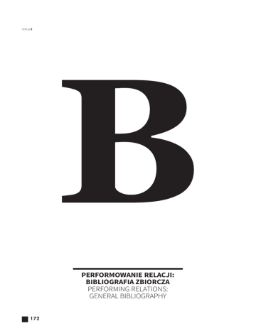 Sekcja 2 PERFORMOWANIE RELACJI: BIBLIOGRAFIA ZBIORCZA PERFORMING RELATIONS: GENERAL BIBLIOGRAPHY 172 Sekcja 2 Allsopp, Ric i André Lepecki. „On Choreography.” Performance Research: A Journal of the Performing Arts 13 (1) (2008): 1-4. Bal, Mieke. Wędrujące pojęcia w naukach humanistycznych. Krótki przewodnik. Tłum. Marta Bucholc. Warszawa: Narodowe Centrum Kultury, 2012. Banes, Sally. Democracy’s Body. Judson Dance Theatre, 1962-1964. Durham, London: Duke University Press, 1993. Barthes, Roland. Światło obrazu. Uwagi o fotografii. Tłum. Jacek Trznadel. Warszawa: Aletheia, 2008. Benjamin, Walter. Pasaże. Tłum. Ireneusz Kania. Warszawa: Wydawnictwo Literackie, 2005. Derrida, Jacques. „Archive fever: A freudian impression.” Diacritics nr 2 (1995): 9-63. Bikont, Anna i Joanna Szczęsna. Lawina i kamienie. Pisarze wobec komunizmu. Warszawa: Prószyński i s-ka, 2006. Bishop, Claire. Sztuczne piekła. Sztuka partycypacyjna i polityka widowni. Tłum. Jacek Staniszewski. Warszawa: Fundacja Bęc Zmiana, 2015. Bishop, Claire. „Teatralizując życie.” Tłum. Jacek Staniszewski. Dialog 11 (2014): 21-36. Dodatek towarzyszący projektowi Awangarda i socrealizm. Bishop, Claire. „Antagonism and Relational Aesthetics.” October nr 4 (110) (Autumn 2004): 51-79. Burt, Ramsay. Judson Dance Theater: Performative Traces. London, New York: Routledge, 2006. Clair, Jean. La responsabilité de l’artiste. Les avant-gardes entre terrerur et raison. Paris: Gallimard, 1997. Cvejić, Bojana. Choreographing Problems. Expressive Concepts in European Contemporary Dance and Performance. New York: Palgrave, 2015. Domańska, Ewa. „Zwrot performatywny we współczesnej humanistyce.” Teksty drugie nr 5 (2007): 48-61. Domańska, Ewa. „Problem rzeczy we współczesnej archeologii.” W Rzeczy i ludzie. Humanistyka wobec materialności, red. Jakub Kowalewski i Wojciech Piasek, 27-60. Olsztyn: Wyd. Instytutu Filozofii UWM, 2008. Fazan, Teresa i Mateusz Szymanówka. „Badanie/produkcja. Rezydencje: pozycja trupa.” dwutygodnik.com. http://www.dwutygodnik.com/ artykul/5517-badanieprodukcja-rezydencje-pozycja-trupa.html. Foster, Susan Leigh. Choreographing Empathy. Kinesthesia in Performance. London, New York: Routledge, 2010. Franko, Mark. Dancing Modernism / Performing Politics. Bloomington: Indiana University Press, 1995. Groys, Boris. Stalin jako totalne dzieło sztuki. Tłum. Piotr Kozak. Warszawa: Wydawnictwo Sic!, 2010. Hanicka, Barbara. Leworęczna kobieta. Kraków: Stary Teatr w Krakowie, 1998. Kat. wyst. Haraway, Donna. „Wiedze usytuowane i przywilej częściowej/ograniczonej perspektywy” [1988], tłum. Agata Czarnacka (2009). Dostępny 9.05.2016. http://www.ekologiasztuka.pl/pdf/f0062haraway1988.pdf. Hardt, Michael. Praca afektywna. Tłum. Piotr Juskowiak i Krystian Szadkowski. Kultura współczesna nr 3 (2012): 83-93. Heidegger, Martin. „O źródle dzieła sztuki.” Tłum. Lucyna Falkiewicz Sztuka i filozofia nr 5 (1992): 9-67. Herbut, Anka. „Ślizganie, turlanie, uderzanie.” dwutygodnik.com. http://www.dwutygodnik.com/artykul/5659-slizganie-turlanie-uderzanie.html. Holmes, Brian. „Manifest afektywistyczny.” Tłum. Piotr Juskowiak. W Przyjdźcie, pokażemy Wam, co robimy. O improwizacji tańca, red. Katarzyna Słoboda i Sonia Nieśpiałowska-Owczarek, 249-252. Łódź: Muzeum Sztuki, 2013. Jach, Aleksandra, Marta Olejniczak i Piotr Olkusz. Awangarda i socrealizm. W 65 lat po powstaniu Teatru Nowego w Łodzi. Statement kuratorski. http://nowy.pl/item/teatrplus/article/awangardaisocrealizm/lang/pl. Jarecka, Dorota. „Na trzy akty.” Didaskalia 126 (2015): 96-100. Joy, Jenn. The Choreographic. Cambridge MA: MIT Press, 2014. Kantor, Tadeusz. Lekcje mediolańskie 1986. Kraków: Cricoteka, 1991. Kopytoff, Igor. „Kulturowa biografia rzeczy – utowarowienie jako proces.” W Badanie kultury. Elementy teorii antropologicznej, red. Marian Kempny i Ewa Nowicka, 249-274. Warszawa: Wydawnictwo Naukowe PWN, 2003. Krajewski, Marek. „Style życia przedmiotów. Zarys koncepcji.” W Style życia wartości obyczaje. Stare tematy, nowe spojrzenia, red. Aldona Jawłowska, Wojciech Pawlik i Barbara Fatyga, 49-70. Warszawa: Wydawnictwo Uniwersytetu Warszawskiego, 2012. Kunst, Bojana. Artist at Work, Proximity of Art and Capitalism. Winchester UK, Waszyngton USA: Zero Books, 2015. Kurz, Iwona. „Powrót do archiwów.” Kultura współczesna nr 4 (2011): 7-16. LabanLab. http://labanlab.osu.edu/. Lash, Scott i Celia Lury. Globalny przemysł kulturowy. Kraków: Wydawnictwo Uniwersytetu Jagiellońskiego, 2011. Latour, Bruno. Splatając na nowo to, co społeczne. Wprowadzenie do teorii aktora-sieci. Tłum. Aleksandra Dera i Krzysztof Arbiszewski. Kraków: Universitas, 2010. Lepecki, André. Singularities: Dance in the Age of Performance. London, New York: Routledge, 2016. Lepecki, André. Exhausting Dance. Performance and the Politics of Movement. London, New York: Routledge, 2006. Leśnierowska, Joanna. „... (Rooms by the sea) z cyklu ćwiczenia w patrzeniu.” http://www.artstationsfoundation5050.com/taniec/wydarzenie/-rooms-by-the-sea-z-cyklu-wiczenia-w-patrzeniu/858. Maciejczak, Marek. Świat według ciała w fenomenologii percepcji M. Merleau-Ponty’ego. Toruń: Wydawnictwo Corner, 1995. Majewska, Jadwiga. My, Taniec. Antologia polskiej krytyki tańca po 1989 roku. Tarnów: Centrum Sztuki Mościce, 2013. Martin, John. The Modern Dance. New York: A. S. Barnes & Co, 1933. mm [Mateusz Żurawski]. „Miasto liczy psie nosy.” Dostępny 28.03.2014. http://jerzygrzegorzewski.net/?spektakl=miasto-liczy-psie-nosy. 173 Sekcja 2 Mouffe, Chantal. Agonistyka.Polityczne myślenie o świecie. Tłum. Barbara Szelewa. Warszawa: Wydawnictwo Krytyki Politycznej, 2015. Napiontkowa, Maria. Teatr polskiego października. Warszawa: Instytut Sztuki PAN, 2012. nn, „O projekcie archiwum.” Dostępny 28.03.2014. http://jerzygrzegorzewski.net/?page_id=8. Olsen, Bjørnar. W obronie rzeczy. Archeologia i 