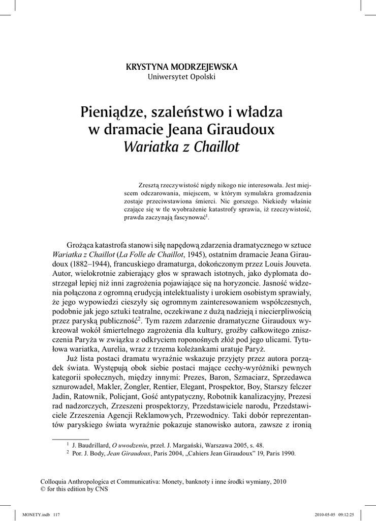 Pieni¹dze, szaleñstwo i w³adza w dramacie Jeana Giraudoux