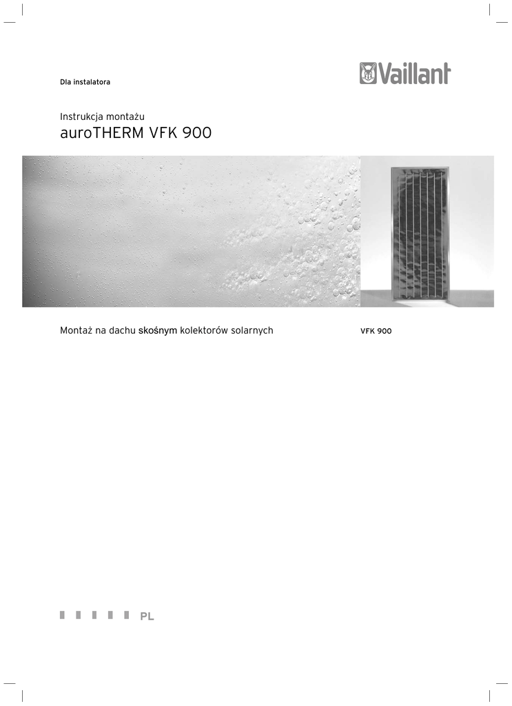 Dla instalatora Instrukcja montażu auroTHERM VFK 900 Montaż na dachu VNRĞQ\P kolektorów solarnych PL VFK 900 Spis treści 1 Informacje dotyczące instrukcji 2 Wskazówki dotyczące bezpieczeństwa Spis treści Stosowane symbole Podczas montażu kolektora należy przestrzegać wskazówek bezpieczeństwa podanych w niniejszej instrukcji montażu! 1 Informacje dotyczące instrukcji. . . . . . . . . . . 2 2 Wskazówki dotyczące bezpieczeństwa . . . . . 2 3 3.1 3.1.1 3.1.2 3.1.3 3.2 Montaż na dachu . . . . . . . . . . . . . . . . . . . . . . . Przegląd typów. . . . . . . . . . . . . . . . . . . . . . . . . . . . Zestawy montażowe i zakres dostawy . . . . . . . . Kotwa krokwiowa . . . . . . . . . . . . . . . . . . . . . . . . . . Schemat połączeń . . . . . . . . . . . . . . . . . . . . . . . . . Montaż . . . . . . . . . . . . . . . . . . . . . . . . . . . . . . . . . . . 3 3 3 4 5 6 4 Recykling . . . . . . . . . . . . . . . . . . . . . . . . . . . . . 9 5 Dane techniczne kolektorów płaskich . . . . . . 10 • Symbol sygnalizujący konieczność działania 6 Serwis. . . . . . . . . . . . . . . . . . . . . . . . . . . . . . . . 2 11 Niebezpieczeństwo! Bezpośrednie zagrożenie zdrowia i życia! Uwaga! Możliwe zagrożenie dla urządzenia i środowiska naturalnego! Wskazówka! Pożyteczne informacje i wskazówki. Wskazówki dotyczące bezpieczeństwa Przepisy techniczne Montaż musi odpowiadać miejscowym uwarunkowaniom, przepisom i obowiązującym zasadom techniki. Należy uwzględnić wszystkie obowiązujące przepisy krajowe, szczególnie w zakresie: - prac montażowych na dachu, - podłączania solarnych instalacji grzewczych - prac elektrycznych - wykonywania instalacji odgromowych - wyrównywania różnicy potencjałów instalacji elektrycznych 1 Informacje dotyczące instrukcji Przedstawione niżej informacje stanowią pomoc w korzystaniu z instrukcji. Wraz z niniejszą instrukcją montażu obowiązują pozostałe dokumenty. Za szkody spowodowane nieprzestrzeganiem tych instrukcji i dokumentów nie ponosimy odpowiedzialności. Dokumenty dodatkowe Podczas montażu i instalowania systemu solarnego należy uwzględnić wszystkie instrukcje instalacji części i podzespołów instalacji. Instrukcje te są dołączone do poszczególnych części instalacji oraz podzespołów uzupełniających. Przepisy bhp Podczas montażu kolektorów przestrzegać obowiązujących przepisów krajowych dotyczących prac na wysokościach. Należy zapewnić wymagane zabezpieczenie przed spadkiem, np. przez stosowanie rusztowań dachowych lub dachowych ścianek ochronnych. Jeżeli nie da się zastosować rusztowania dachowego lub dachowej ścianki ochronnej, użyć można też szelek bezpieczeństwa. Używać narzędzi i przyrządów pomocniczych, jak dźwignice lub drabiny, tylko zgodnie z obowiązującymi przepisami bhp. Dostatecznie odgrodzić powierzchnie w pobliżu krawędzi spadku poniżej miejsca montażu, aby zapobiec obrażeniom ciała przez spadające przedmioty. Odpowiednio oznakować stanowisko pracy np. tablicami informacyjnymi zgodnie z obowiązującymi przepisami. Przekazywanie i przechowywanie instrukcji Niniejszą instrukcję montażu należy wręczyć użytkownikowi instalacji. Na nim spoczywa obowiązek starannego przechowywania instrukcji i udostępnienia jej w razie potrzeby. 2 Instrukcja montażu auroTHERM VFK 900 Montaż na dachu 3 3 Montaż na dachu 3.1 Przegląd typów 3.1.1 Zestawy montażowe i zakres dostawy 10 1930 mm 1160 mm 7 6 9 8 4 3 110 mm 2 1 Rys. 3.1 Zestaw podstawowy do poziomego lub pionowego montażu kolektora VFK na dachu (tu na przykładzie poziomego ułożenia kolektora) 10 8 7 2 3 1 6 Legenda do rysunków 3.1 i 3.2 1 kotwa krokwiowa (nie jest częścią zestawu podstawowego) 2 śruby do szybkiego montażu 6x80 3 śruba z łbem młoteczkowym M10x30 z nakrętką 4 szyna montażowa o długości 2370 mm 5 łącznik do przedłużenia szyny montażowej z śrubą z łbem młoteczkowym ze stali szlachetnej M10x30 z nakrętką 6 przedłużenie szyny montażowej o długości 1168 mm 7 zacisk do mocowania kolektora VFK z śrubą z łbem młoteczkowym M10x30 z nakrętką 8 przewód giętki ze stali szlachetnej z nakrętkami nasadowymi 1/2” i izolacją 20x13 mm, długość 250 mm 9 pierścień uszczelniający 10 kolektor VFK (nie jest częścią zestawu podstawowego) 5 Rys. 3.2 Zestaw rozszerzeniowy do montażu kolektora VFK na dachu na przykładzie poziomego ułożenia kolektora Instrukcja montażu auroTHERM VFK 900 3 3 Montaż na dachu Poz. Lista części Zestaw podstawowy 3 4 5 6 7 8 śruba z łbem młoteczkowym ze stali szlachetnej M10x30 z nakrętką szyna montażowa o długości 2370 mm łącznik przedłużenie szyny montażowej o długości 1168 mm zacisk do mocowania kolektora VFK przewód giętki ze stali szlachetnej z nakrętkami nasadowymi 1/2”, z pierścieniem uszczelniającym i izolacją 20x13 mm, długość 250 mm uchwyt kolektora VFK (wymagany tylko do montażu pionowego) nr wyrobu Zestaw rozszerzeniowy 12 2 6 1 8 2 2 2 1 4 309 632 2 302 387 Tab. 3.1 Lista części zestawów do montażu na dachu Zestaw Zestaw podstawowy rozszerzeniowy Lista części kotwa krokwiowa typu P do frankfurckiej dachówki esówki, ocynkowana śruby do szybkiego montażu 6x80 nr wyrobu kotwa krokwiowa typu S do dachówki karpiówki lub dachu krytego łupkiem, ocynkowana śruby do szybkiego montażu 6x80 nr wyrobu kotwa krokwiowa typu W90 do dachu „berlińska fala“, ocynkowana z kapturkiem i taśmą z gumy komórkowej śruby do szybkiego montażu 6x80 nr wyrobu 6 2 18 6 302 047 302 061 6 2 12 6 302 026 302 027 6 2 12 4 302 049 302 070 Tab. 3.2 Lista kotew krokwiowych 3.1.2 Kotwa krokwiowa Kotwy krokwiowe mocuje się do krokwi dachu śrubami do szybkiego montażu (6x80). Jeżeli nie jest to możliwe, np. w przypadku dachu „berlińska fala“, należy zamontować przejmy z kantówki o minimalnych wymiarach 60x80. Szyny montażowe łączone są z kotwami krokwiowymi przy u