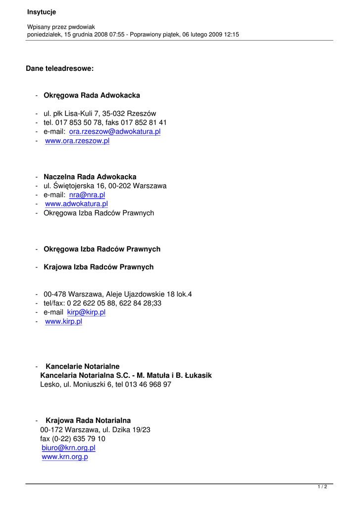 Dane teleadresowe: - Okręgowa Rada Adwokacka - ul. płk Lisa