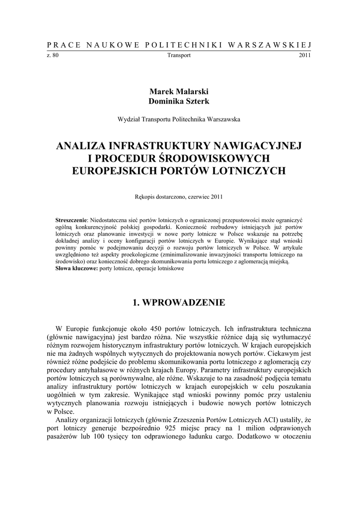 Słowa kluczowe: porty lotnicze, operacje lotniskowe