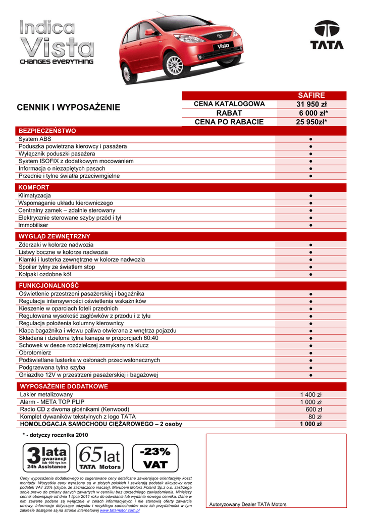 Cennik samochodów TATA Indica Vista