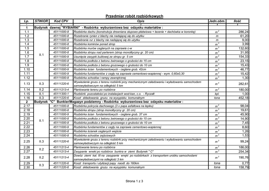 Przedmiar robót rozbiórkowych