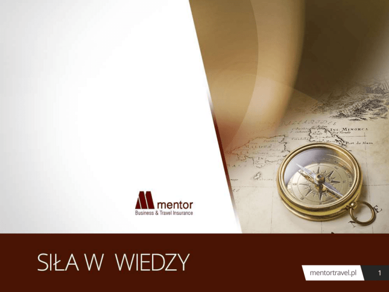 mentortravel.pl 1 MB&TI Zespół doświadczonych ekspertów wywodzących się z rynku ubezpieczeniowego i turystycznego Zapewniamy kompleksową ochronę ubezpieczeniową podmiotom działającym w branży turystycznej Poszukujemy nowatorskich rozwiązań mentortravel.pl 2 MB&TI Negocjujemy najlepsze warunki ubezpieczenia Zarekomendujemy optymalne rozwiązania Nie poniesiecie Państwo kosztów naszej usługi Działamy w ramach grupy Mentor S.A. mentortravel.pl 3 GRUPA MENTOR SIEĆ ODDZIAŁÓW I PRZEDSTAWICIELSTWA LOKALIZACJA ODDZIAŁÓW Olsztyn Szczecin Toruń Gorzów Wlk. Warszawa Poznań Warszawa, Chorzów, Szczecin, Poznań, Rzeszów, Toruń, Olsztyn, Łódź, Katowice, Kielce, Kraków, Wrocław, Gorzów Wlkp. Łódź Wrocław PRZEDSTAWICIELSTWA Kielce Chorzów Kraków Rzeszów Warszawa, Lublin, Bydgoszcz, Konin, Kempen ( Niemcy), Kleczew (filia). Katowice mentortravel.pl 4 GRUPA MENTOR Mentor Consulting Sp. z o.o. - świadczy profesjonalne usługi w zakresie oceny stanu technicznego i monitoringu otoczenia placu budowy oraz oceny ryzyka przy realizowanych przedsięwzięciach budowlanych i montażowych. Stowarzyszenie Horyzont Pro - nasz pomysł na kontynuację ubezpieczeń na życie dla pracowników odchodzących z pracy przed osiągnięciem wieku emerytalnego – aktualnie ponad 2800 członków. Mentor Ubezpieczenia Indywidualne Sp. z o.o. rozbudowywana sieć sprzedaży ubezpieczeń majątkowych (ubezpieczenia OC, Casco, nieruchomości, LS, etc.). mentortravel.pl 5 GRUPA MENTOR Mentor Ukraina Sp. z o.o. - obsługuje podmioty lokujące inwestycje na rynku wschodnim. Mentor Business & Travel Insurance Sp. z o.o. współpraca z podmiotami działającymi w branży turystycznej w zakresie ubezpieczeń organizatorów turystyki, ubezpieczenia OC, ochrony prawnej, sprzeniewierzenia, programów dedykowanych dla biur podróży. Mentor Re Sp. z o.o. - broker reasekuracyjny, pośrednictwo w zawieraniu umów reasekuracyjnych z zakładami ubezpieczeń. mentortravel.pl 6 NASZE ATUTY W LICZBACH 19 lat działalności na rynku 35mln euro wysokość polisy OC brokera 3500 103 licencjonowanych brokerów obsługiwanych Klientów 500 000 osób ubezpieczonych na życie 5000 ilość rocznie likwidowanych szkód przez brokera 512 mln wysokość rocznej składki ubezpieczeniowej zainkasowanej przez zakłady ubezpieczeń 7 radców prawnych mentortravel.pl 7 Nasza oferta Kompleksowe ubezpieczenia organizatorów turystyki Program dedykowany dla biur podróży Kompleksowe ubezpieczenie hoteli i innych gestorów bazy wypoczynkowej Ubezpieczenie odpowiedzialności cywilnej członków zarządu mentortravel.pl 8 Ubezpieczenia organizatorów turystyki Gwarancja ubezpieczeniowa Ubezpieczenie kosztów leczenia i nnw Ubezpieczenie kosztów rezygnacji Ubezpieczenie bagażu Ubezpieczenie mienia i komunikacyjne Ubezpieczenia na życie i zdrowotne mentortravel.pl 9 Ubezpieczenie odpowiedzialności cywilnej organizatora turystyki przedmiot ubezpieczenia: odpowiedzialność cywilna deliktowa i kontraktowa organizatora turystyki do wyboru 3 sumy ubezpieczenia: 250 000 PLN, 500 000 PLN oraz 1 000 000 PLN Składka już od 0,65 PLN od uczestnika Franszyza redukcyjna – tylko 500 PLN Wycena składki przy minimum 300 000 ubezpieczonych mentortravel.pl 10 Rosnące ryzyko organizatora turystyki Wzrost świadomości prawnej klientów, skutkujący roszczeniami wobec organizatorów Prokonsumenckie orzecnictwo sądowe Zadośćuczynienie za ból, cierpienie oraz utratę urlopu mentortravel.pl 11 Przykładowe roszczenia klientów Czterokończynowe porażenie na skutek upadku z balkonu hotelowego Uraz kolana wskutek poślizgnięcia się w restauracji hotelowej Wypadki na placach zabaw i zjeżdżalniach Zniszczenie rzeczy wskutek zalania pokoju w hotelu mentortravel.pl 12 Dziękujemy za uwagę www.mentortravel.pl kontakt: grazyna.panek @ mentor.pl