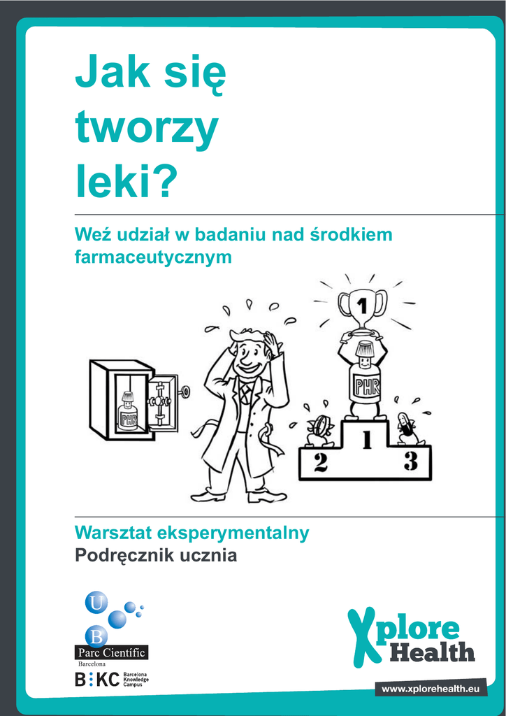 Jak się tworzy leki? Weź udział w badaniu nad środkiem farmaceutycznym Warsztat eksperymentalny Podręcznik ucznia 1 Wprowadzenie Proces odkrywania i tworzenia nowych leków odbywa się wieloetapowo. Jeden z najważniejszych etapów polega na tym, aby wynaleźć cząsteczkę działającą jak środek farmaceutyczny i dającą możliwie jak najmniej skutków ubocznych. Naukowcy z Platformy Chemii Kombinatorycznej Parku Naukowego w Barcelonie prowadzą badania nad nowym specyfikiem przeciw chorobie Parkinsona. Obecnie leczenie Parkinsona polega na podawaniu chorym pacjentom zestawu różnych leków. Ten system podawania leków jest nie tylko niewygodny z uwagi na konieczność zażywania naraz wielu specyfików, lecz również niesie ze sobą istotne skutki uboczne. Zadaniem tej grupy badawczej jest połączenie dwóch leków poprzez łańcuch powiązanych ze sobą cząsteczek, tworząc tym sposobem jedną jedyną cząsteczkę o bardziej złożonej budowie, która umożliwi podawanie pacjentom tylko jednego specyfiku zwalczającego chorobę Parkinsona. Aby móc przeprowadzić to badanie należy po pierwsze dysponować specyfikami lub cząsteczkami, jakie się będzie chciało połączyć. W tym celu badacze z ww. Platformy przeprowadzili szereg reakcji chemicznych, które umożliwiły im otrzymanie żądanego produktu w laboratorium. Cel badania Substancje przeciwdziałające chorobie Parkinsona Zestaw leków Jeden jedyny lek Cele warsztatu Celem niniejszych zajęć warsztatowych jest zapoznanie się z przebiegiem badania prowadzonego w laboratorium chemicznym, bazującego na poszukiwaniu nowych leków. Będziesz w szczególności uczestniczyć w procesie syntezy jednej z tych cząsteczek, które używa się do przeprowadzenia badań nad nowym specyfikiem przeciw chorobie Parkinsona. 2 Organizacja warsztatu Warsztat składa się z trzech etapów. Najpierw przeprowadzona zostanie reakcja chemiczna (1) polegająca na zadziałaniu na pirymidon azotynem sodu. Następnie wyodrębni się powstały produkt (2) metodą filtracji próżniowej, a na koniec dokona określenia charakterystyki otrzymanego produktu (3) techniką chromatografii cienkowarstwowej z zastosowaniem lampy UV, aby sprawdzić, czy otrzymało się żądany produkt. 1. Reakcja chemiczna 2. Wyodrębnienie produktu przez filtrację 3. Określenie charakterystyki produktu metodą chromatografii Ta reakcja chemiczna stanowi zaledwie niewielką część całego procesu, niemniej ma kluczowe znaczenie dla uzyskania pożądanego produktu. Notatki laboratoryjne: W specjalnym notatniku laboratoryjnym należy opisywać każdy przeprowadzany etap powyższej procedury, wraz z zaobserwowanymi w jego trakcie zmianami. Należy również zanotować wyniki i końcowe wnioski tak, jak robią to naukowcy w swoich laboratoriach. 3 Niezbędny sprzęt i materiały wspornik zacisk i nakrętka próbówka lejek kolba kolba próżniowa lejek Buchnera gumowa uszczelka juko łyżeczko-szpatułka szale wagi Nożyczki i zaciski szklana rurka kapilarna rdzeń magnetyczny zatyczka Papier filtracyjny (tylko do pracy z monitorem) warstwa żelu krzemionkowego szklana fiolka zlewka wstrząsarka waga eppendorfy butelka lampa ultrafioletowa pompa próżniowa odczynniki: Pirymidon (toksyczny) * Azotyn sodu (toksyczny) * 42% roztwór kwasu octowego (powoduje korozję) * Rozpuszczalniki użyte w chromatografii (toksyczne) * * Zapoznaj się ze środkami ostrożności, jakie należy stosować przy posługiwaniu się tymi produktami chemicznymi Inne niezbędne materiały: ołówki, flamastry, fartuchy laboratoryjne, rękawiczki, okulary ochronne i pojemnik na odpady. 4 Środki bezpieczeństwa Zasięgnij informacji Sprawdź umiejscowienie elementów bezpieczeństwa laboratorium lub stanowiska eksperymentalnego (gaśnice, prysznice lub łazienki, wyjścia ewakuacyjne itp.). Przed przystąpieniem do przeprowadzania eksperymentu przeczytaj uważnie instrukcje. Pamiętaj o tym, aby zapoznać się z treścią etykiet bezpieczeństwa odczynników i przyrządów. Używaj odpowiedniej odzieży: rękawic, fartucha i okularów ochronnych. OBOWIĄZEK UŻYWANIA OKULARÓW OBOWIĄZEK UŻYWANIA FARTUCHA Ogólne zasady bezpieczeństwa Zabrania się palenia tytoniu, spożywania posiłków i napojów w laboratorium lub na stanowisku eksperymentalnym. Przed opuszczeniem laboratorium należy dokładnie umyć ręce. Poszczególne czynności należy wykonywać powoli, w sposób uporządkowany i zachowując czystość w miejscu pracy. W razie rozlania produktu należy go natychmiast sprzątnąć. Pozostawiać zawsze materiał w czystości i porządku. Nie stosować nigdy żadnego przyrządu ani urządzenia bez doskonałej znajomości jego funkcjonowania. OBOWIĄZEK UŻYWANIA RĘKAWICZEK Posługiwanie się elementami szklanymi. Przy posługiwaniu się materiałami szklanymi należy chronić dłonie i uważać na ich temperaturę, gdyż gorące szkło nie różni się wyglądem od zimnego. Nie używać szkła z widocznymi śladami pęknięć. Substancje chemiczne Nie używaj żadnej nieoznaczonej odpowiednią etykietą fiolki z odczynnikami. Nie wąchaj, nie wdychaj, nie próbuj ani nie dotykaj produktów chemicznych. Nie pipetuj nigdy próbki produktu ustami. Jeśli posługujesz się toksycznymi i żrącymi substancjami chemicznymi, załóż rękawice i myj często ręce. Nie zbliżaj pojemników z odczynnikami do otwartego płomienia. Nie podgrzewaj łatwopalnych cieczy. Przenoś butle przytrzymując je zawsze od spodu, nigdy za szyjkę. Usuwanie odpadów Umieść w specjalnych, należycie oznakowanych kontenerach: zbite szkło, toksyczne, trujące lub szkodliwe dla środowiska odczynniki oraz odpady biologiczne. W żadnym wypadku nie wyrzucaj odpadów stałych do zlewu. W razie wypadku bezzwłocznie powiadom o tym opiekuna. Pamiętaj! W razie jakichkolwiek wątpliwości należy zasięgnąć porady opiekuna. Szczególne środki bezpieczeństwa obowiązujące w ramach niniejszych zajęć warszt