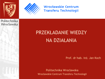 Przekładanie Wiedzy na Działania Prof. zw. dr hab. inż. Jan Koch