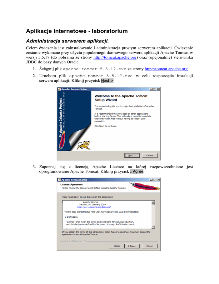1. Ściągnij plik apache-tomcat-5.5.17.exe ze strony http://tomcat.apache.org