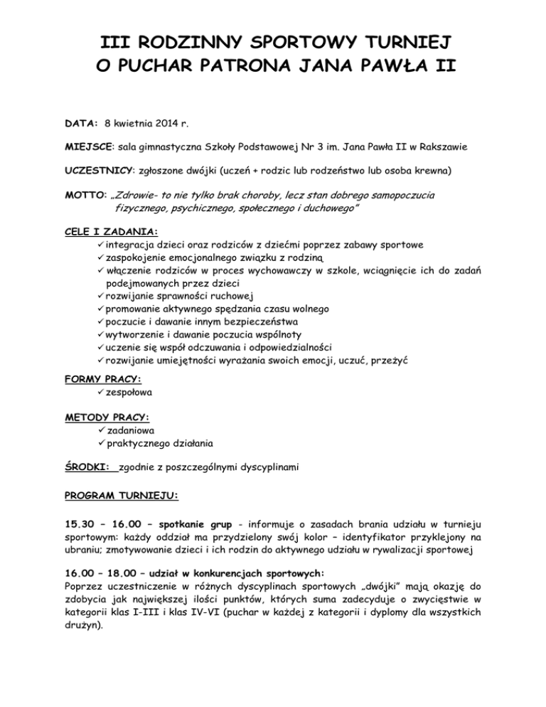 iii rodzinny sportowy turniej o - Szkoła Podstawowa Nr 3 im. Jana