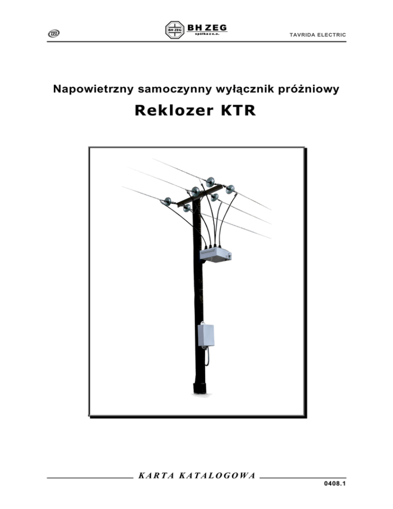 TAVRIDA ELECTRIC Napowietrzny samoczynny wyłącznik próżniowy Reklozer KTR KARTA KATALOGOWA 0408.1 TAVRIDA ELECTRIC Charakterystyka ogólna Napowietrzne samoczynne wyłączniki próżniowe reklozery serii KTR są przeznaczone do stosowania w trójfazowych sieciach rozdzielczych o napięciu znamionowym do 27 kV i częstotliwości 50 lub 60 Hz. Może być stosowany jako element linii napowietrznej lub stacji elektroenergetycznej. Reklozer KTR jako kompletny wyrób składa się z zespołu wykonawczego OSM oraz zespołu sterowniczego RC połączonych specjalnym przewodem sterowniczym. Zespół sterowniczy RC jest urządzeniem mikroprocesorowym realizującym funkcje automatyki zabezpieczeniowej, pomiaru i rejestracji danych oraz komunikacji. Reklozer KTR jest urządzeniem wielofunkcyjnym. Może być zastosowany indywidualnie lub, dzięki posiadanym funkcjom komunikacyjnym, może być zintegrowany z systemami automatyki zabezpieczeniowej i zdalnego sterowania stosowanymi w sieciach rozdzielczych SN. W celu zapewnienia bezawaryjnej pracy w długim przedziale czasu, wyrób został poddany gruntownym badaniom typu, zarówno przez producenta (Tavrida Electric Ltd.), jak również niezależne laboratoria. W reklozerze KTR wykorzystano wyrafinowane technologie, opracowane i rozwinięte w ostatnim dziesięcioleciu przez Tavrida Electric Ltd. W celu skrócenia przerw w zasilaniu odbiorców energii i zwiększenia efektywności ekonomicznej, w reklozerze KTR zastosowano w pełni konfigurowalną strukturę układów automatyki zabezpieczeniowej, która wraz z systemem komunikacji pozwala na optymalne dostosowanie funkcjonalne do sieci rozdzielczej SN. KTR Karta katalogowa 0408.1 2 TAVRIDA ELECTRIC Zespół wykonawczy OSM Zespół OSM reklozera serii KTR przeznaczony jest do załączania, przewodzenia i wyłączania prądów w sieciach SN w warunkach normalnych i awaryjnych. Operacje łączeniowe mogą odbywać się w trybie operacyjnym lub w cyklu automatyki SPZ. Głównym elementem zespołu OSM jest wyłącznik próżniowy ISM umieszczony wewnątrz obudowy poliwęglanowej, zamknięty wewnątrz osłony wykonanej ze stopu aluminium. Konstrukcja zapewnia maksymalna trwałość i pewność działania przy jednoczesnym zachowaniu wysokiego poziomu izolacji wyłącznika próżniowego wewnątrz aluminiowej obudowy. We wszystkich sześciu izolatorach przepustowych znajdują się przekładniki prądowe i napięciowe (9). Przekładniki prądowe, (do pomiaru prądów fazowych oraz prądu zerowego) są wykonane jako cewki Rogowskiego, zaś przekładniki napięciowe (do pomiaru napięć fazowych po każdej ze stron wyłącznika) wykonane są w formie pojemnościowych dzielników napięcia. W wyłączniku ISM zastosowano wyzwalacz magnetyczny czwartej generacji opracowany przez Tavrida Electric Ltd. Wyzwalacze magnetyczne są uruchamiane energią zgromadzoną w kondensatorach zespołu sterowniczego. Obwody główne reklozera mogą być rozłączane ręcznie przy pomocy cięgna mechanicznego, umieszczonego w podstawie obudowy. Pozycja wyłącznika sygnalizowana jest za pomocą wskaźników: „O” - otwarty, „I” - zamknięty, umieszczonych w podstawie obudowy. Stan wyłącznika jest również odzwierciedlany przez układy elektroniki zespołu sterowniczego, współpracujące z zestykami pomocniczymi wyłącznika. Do podstawy obudowy przymocowana jest tabliczka znamionowa oraz zacisk uziemiający. Poniżej przedstawiono przekrój wyłącznika próżniowego zespołu wykonawczego OSM, wraz z najważniejszymi elementami składowymi. Każdy biegun wyłącznika posiada indywidualny wyzwalacz magnetyczny (6). Wszystkie wyzwalacze sprzężone są mechanicznie, co gwarantuje prawidłowe trójfazowe działanie. Wyłącznik w każdym położeniu (otwarty albo zamknięty) podtrzymywany jest za pomocą zatrzasku magnetycznego. 1. Styki przyłączeniowe – sworznie izolatorów przepustowych 2. Osłona silikonowa izolatora przepustowego 3. Komora próżniowa 4. Obudowa poliwęglanowa 5. Osłona aluminiowa 6. Wyzwalacz magnetyczny 7. Izolowany drążek prowadzący 8. Sprężyna wyłączająca 9. 10. Przekładniki napięciowe i prądowe Zestyki pomocnicze Zespół wykonawczy OSM – widok w przekroju KTR Karta katalogowa 0408.1 3 TAVRIDA ELECTRIC Zespół sterowniczy RC Zespół sterowniczy RC jest urządzeniem mikroprocesorowym pełniącym funkcje: kierunkowego zabezpieczenia nadprądowego dla zwarć międzyfazowych i doziemnych, czułego zabezpieczenia ziemnozwarciowego, automatyki SPZ, pomiaru i rejestracji danych oraz układu współpracy z nadrzędnym systemem sterowania i monitoringu. n e go, podłączanego poprzez złącze lub poprzez zaciski wejść dwustanowych. Konsola operatora, umieszczona na płycie czołowej zespołu, zawiera 4-wierszowy podświetlany wyświetlacz LCD oraz klawiaturę do sterowania lokalnego. Dziennik zdarzeń Zespół sterowniczy RC składa się z 3 głównych elementów: ! modułu przetwarzania MPM; ! modułu sterowania DM, zawierającego kondensatory dostarczające energii dla wykonania operacji wyłącz/załącz; ! zasilacza bezprzerwowego PSM, dostarczającego wewnętrznego napięcia zasilającego do układów zespołu sterowniczego, urządzenia łączności radiowej oraz układu ładowania baterii. Do zasilacza może być doprowadzone napięcie zewnętrzne 100-240 V AC, 50 lub 60 Hz. RTU Do budowy zespołu RC użyte zostały specjalnie wyselekcjonowane podzespoły, mogące pracować w zakresie temperatur –40 °C do +55 °C wewnątrz szczelnej obudowy klasy IP65. Zespół RC oferuje dwa oddzielne dzienniki zdarzeń ze znacznikiem czasu o rozdzielczości 0,01 s. Pierwszy dziennik, dostępny na wyświetlaczu LCD, dostarcza podstawowych informacji operacyjnych pracownikowi obsługi w terenie. Drugi dziennik, dostępny za pomocą komputera PC z wykorzystaniem programu TELUS, zawiera pełną informację o historii działania urządzenia, w tym zarejestrowane zmiany nastawień, łączeń operac