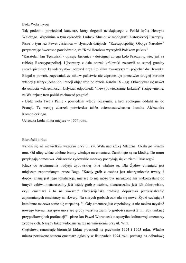miastach. Nie wstydzą się tych nazw prostych nawet miasta duże jak Kraków, Wrocław,