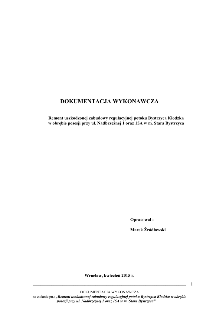 dokumentacja wykonawcza - Regionalny Zarząd Gospodarki