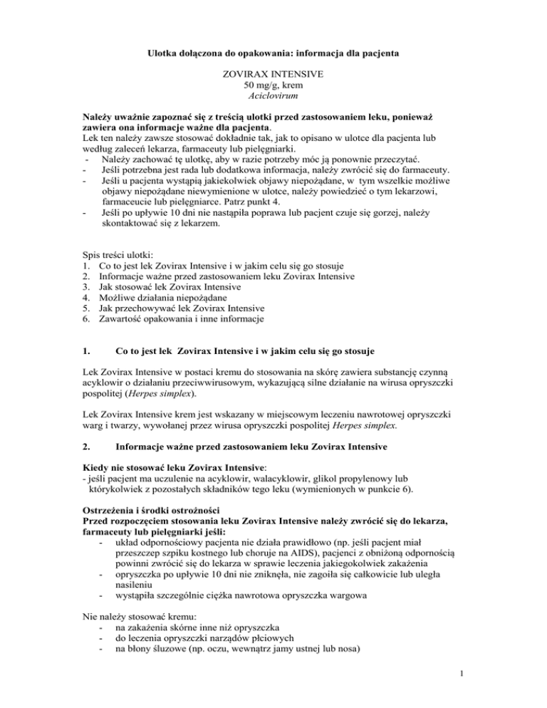 1. Co to jest lek Zovirax Intensive i w jakim celu się go stosuje