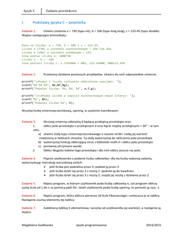 Zadania obejmujące materiał przedmiotu Języki programowania