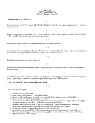 STATUT STOWARZYSZENIA Kibiców Zagłębia Sosnowiec I