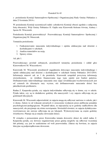 Protokół Nr 45 z posiedzenia Komisji Samorządowo