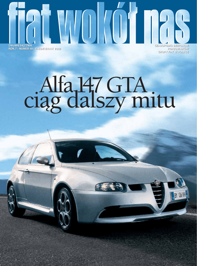 DWUMIESI¢CZNIK ROK 7 - NUMER 40 - PA È D Z I E R N I K 2 0 0 2 CZASOPISMO BEZP¸ATNE PRACOWNIKÓW GRUPY FIAT W POLSCE Alfa147 GTA ciąg dalszy mitu w numerze fiat wokół nas rok 7 – numer 40 – październik 2002 Wydawca: Projekt wydawniczy: Dyrektor Wydawniczy: Fiat Auto Poland 43-300 Bielsko-Biała Ul. Grażyńskiego 141 Tel. 033/8132775 Fax 033/8134176 Satiz Poland Sp. z o.o. Jerzy Piekarczyk Z-ca Redaktora Naczelnego: Francesco Novo Biuro reklamy: Opracowanie, skanowanie, skład i przygotowanie do druku: Dyrektor Artystyczny: Druk: Nakład: Redakcja: Sekretariat: e-mail: 10 22 24 O tym się mówi Ze świata Fiata Chwila refleksji: Krzysztof Jasiński Prezentujemy Alfę 147 GTA, Stilo SW i Ferrari Enzo Nowa gama Seicento Fiat Avio na polskich skrzydłach 18 Diesel przyszłości 27 Wizyta władz Fiata Auto Enrico Pavoni Redaktor Naczelny: Odpowiedzialny za edycję w Grupie Fiat: 4 6 8 20 30 34 36 40 48 50 Ettore Gregoriani Adam Gębuś tel.: 033/813 27 61 Satiz Poland Bielsko-Biała Maciej Feodorów Dimograf Bielsko-Biała 15 000 egz. Satiz Poland ul. 11 Listopada 60/62, 43-300 Bielsko-Biała Filippo Gallino Mirosława Malich Tomasz Libich Gabriela Kolonko [email protected] 51 52 53 54 56 58 59 60 62 Śląska Jesień Gitarowa Tour de Pologne 4 Asy Fiat Auto Poland Ekonomia: Wymieszana Europa Podróże: Istambuł Video: Filmy na dobry wieczór Książki: Różne poziomy relaksu Osobliwości: Głód to zdrowie Cennik samochodów 32 Zintegrowany System Zarządzania w FAP Nowy wizerunek Bizona Spadkobiercy Teksidu Poland Lingotto, wrota do sztuki Szósta edycja Overlandu X-lecie BKS „Stal” Festiwal Kompozytorów Polskich Daily z silnikiem Unijet O tym się mówi Stilo w Stilo „Wakacje letnie od kilku lat spędzam nad Bałtykiem, w urokliwej miejscowości o nazwie Stilo. W tym roku do Stilo zawiózł mnie model Stilo” – tak napisał do naszej redakcji Antoni Hendzel. Samochód, w ramach jazdy próbnej, udostępniło pracownikowi Comau Poland Centrum Sprzedaży Fiat Auto Poland w Bielsku-Białej. W miejscowości o tej samej nazwie, która oddalona jest 15 km od Łeby, nowy model wzbudził oczywiście ogromne zainteresowanie. Nie tylko z powodu nazwy, ale również niezwykle bogatego wyposażenia, jak na samochody tego segmentu. Można to docenić – zdaniem pana Hendzla – podczas tak dalekich podróży. Poświadczenie cer tyfikatów W czerwcu br., w spółce Automotive Lighting Polska Sosnowiec, która zajmuje się produkcją lamp i reflektorów samochodowych, specjaliści z TÜV Rheinland-Berlin Brandengurg przeprowadzili audyt nadzorujący, mający na celu sprawdzenie, czy spełniane są wymagania wynikające z norm ISO/TS 16949. Ponieważ nie stwierdzono żadnych niezgodności, poświadczono cer tyfikat ISO/TS 16949, uzyskany przez Automotive Lighting Polska 27 sierpnia 2001 roku. W następnych dniach podobne audyty przeprowadzono także w Magneti Marelli Exhaust Systems Polska w Dąbrowie Górniczej, produkującej układy wydechowe oraz Magneti Marelli Suspension Systems Poland w Bielsku -Białej i Tychach, zajmującej się produkcją zawieszeń samochodowych. Także tutaj potwierdzono uzyskane w ubiegłym roku cer tyfikaty ISO/TS 16949. NH BIZON ZMIENIA NAZWĘ CNH Global N. V. z ponad 280 jednostkami na całym świecie upraszcza swoje struktury i poprawia obsługę klientów oraz dealerów. Efektem tych działań jest również zmiana nazwy płockiej firmy na CNH Polska Sp. z o. o. W ten sposób CNH koncentruje się na swej zasadniczej działalności, zmierzającej do tworzenia i dalszego wzmacniania różnych marek na różnych rynkach. Działanie to nie będzie miało wpływu na organizacje przemysłowe i handlowe. Firma pozostanie nadal zaangażowana w strategię wielu sieci dystrybucyjnych i marek. CNH jest czołowym producentem ciągników rolniczych i kombajnów zbożowych na świecie, trzecim największym producentem maszyn budowlanych i posiada najszerszy w branży wachlarz usług finansowych. Przychody w 2001 wyniosły ponad 9.7 miliarda dolarów. Centrala firmy ma swą siedzibę w Stanach Zjednoczonych, a sieć dealerów i dystrybutorów CNH umiejscowiona jest w ponad 160 krajach. Produkty rolnicze CNH sprzedawane są pod markami Case IH, New Holland, Steyr i Bizon, natomiast maszyny budowlane – m. in. Case, New Holland Construction, Fiatallis, Fiat-Kobelco, Link-Belt i O&K. 4 Polacy w Centro Pilota W Centro Pilota w Beinasco koło Turynu przeprowadzana jest obecnie weryfikacja procesu uruchomienia nowego modelu, którego produkcję przewidziano w Zakładzie Karoserii w Tychach. Z procesem produkcyjnym w Beinasco, w okresie od września do grudnia 2002 r., zapozna się ponad 300 pracowników Fiat Auto Poland. Koordynatorem Projektu jest inż. Janusz Mikotowicz. Proces szkoleniowy prowadzony jest we współpracy z ISVOR Fiat. Przeszkoleni we Włoszech pracownicy, którzy zapoznają się z produktem, podzielą się później swoją wiedzą z kolegami w czasie uruchamiania produkcji samochodu w Polsce, podczas tzw. preserii. Szkolenie objęło w pierwszej kolejności pracowników Spawalni, którzy pracę rozpoczęli w dniu 2 września 2002 r. Pierwsze nadwozie nowego modelu zeszło z linii 13 września a 14 października br. został uruchomiony silnik w pierwszym gotowym samochodzie na końcówce linii montażowej. W niedzielę 13 października grupę 114 pracowników FAP przebywających na szkoleniu, uczestniczących na Placu Świętego Piotra w Rzymie w uroczystym Angelus, przywitał Papież Jan Paweł II słowami „Pozdrawiam licznie tu zebraną grupę pracowników Fiat Auto Poland z Bielska i z Tychów.” Fiat Stilo nagrodzony w Brazylii Ostatnie dzieło projektantów Fiata otrzymało w Brazylii tytuł „Top Car TV – dla najlepszego samochodu w kraju”. Werdykt wydało jury złożone z 14 specjalistycznych dziennikarzy telewizyjnych. Fiat Stilo w ogólnej klasyfikacji wyprzedził Forda Focus, GM Meriva, Toyotę Corolla i VW Polo, z którymi musiał w