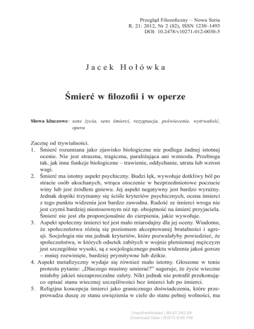 Śmierć w filozofii iw operze - Przegląd Filozoficzny. Nowa Seria