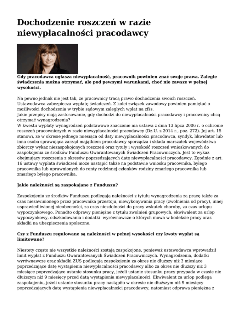 Dochodzenie roszczeń w razie niewypłacalności pracodawcy