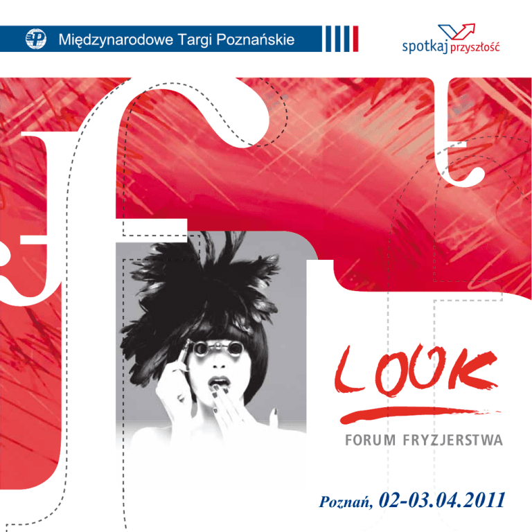 Poznań, 02-03.04.2011 Konkurs KREATOR 2011 www.look-beautyvision.mtp.pl Aleja Lipowa Godziny otwarcia: 9:00 – 17:00 Konferencja Dress for Success Bilet po rejestracji* (on-line na www.mtp24.pl lub na miejscu) – 25 PLN Bilet bez rejestracji* – 35 PLN Aleja Lipowa Bilet dla grup szkolnych* – 20 PLN * bilet jednorazowego wstępu na teren targowy Istnieje możliwość jednorazowego wjazdu na teren MTP – (zakup karty wjazdu on-line lub na miejscu w kasach) Więcej informacji na www.look-beautyvision.mtp.pl Paw. 7 LOOK – ekspozycja wystawców Konkurs KREATOR Otwarte Mistrzostwa Fryzjerstwa Polskiego Mistrzostwa Polski w Makijażu Profesjonalnym Mistrzostwa Polski w Przedłużaniu i Zagęszczaniu Włosów Paw. 7 Antresola V Kongres NAIL EXPERT beautyVISION 2011 Wykłady i szkolenia kosmetyczne i fryzjerskie Paw. 7A LOOK – ekspozycja wystawców Paw. 8A beautyVISION – ekspozycja wystawców: kosmetyka kolorowa, paznokcie, biżuteria V Międzynarodowe Mistrzostwa Polski w zdobnictwie paznokci NAIL EXPERT 2011 VIII Seminarium Solaryjne „Ze słońcem we włosach” Speaker’s Corner - wykłady i prezentacje 11:30 – 11:45 Losowanie miejsc i zajmowanie stanowisk na tafli konkursowej 12:00 Inauguracja Konkursu KREATOR 2011 12:00 – 13:00 Zawodnicy wykonują fryzury konkursowe w kategorii NEW LOOK Regulamin konkursu i zgłoszenia na www.kreatorlook.pl Doradca Artystyczny: Krystyna Piasecka Patroni medialni: Rejestracja zawodników w punkcie informacyjnym Przygotowania w garderobach 13:00 – 13:15 Losowanie miejsc i zajmowanie stanowisk na tafli konkursowej 13:30 – 14:30 Zawodnicy wykonują fryzury konkursowe w kategorii ART&HAIR 16:00 Paw.15, poziom C, sala kongresowa Konferencja stowarzyszenia Dress for Success Scena Główna, Aleja Lipowa Stan na 24.02.2011 AGENCJA PROMOCYJNA, Dana Puciłowska 61-858 Poznań, ul. Grobla 3/6, tel./fax 061 852 34 69, 602 255 440. www.danapucilowska.pl, e-mail: [email protected] 12:10 – 13:00 Spotkanie sędziów 13:00 – 13:30 Ocena Jury 13:30 – 14:00 Obrady Jury Paw. 8A, piętro LOOK & LEARN Akademia Stylizacji M.P.Babicz Aleja Lipowa Scena Główna Organizatorzy konkursu: Rejestracja zawodników w punkcie informacyjnym Przygotowania w garderobach 14:30 – 14:50 Ocena Jury 14:50 – 15:30 Obrady Jury Ogłoszenie wyników Konkursu KREATOR 2011 Współpraca medialna: Paw. 8 beautyVISION – ekspozycja wystawców: kosmetyka pielęgnacyjna, sprzęt i wyposażenie, solaria 8:00 – 12:50 SOBOTA 02 kwietnia Konferencja Dress for Success Kategoria NEW LOOK damska i męska Aleja Lipowa 8:00 – 11:30 Kategoria ART&HAIR Konferencja Dress for Success Paw. 7 fot. Dana Puciłowska Pokazy na SCENIE GŁÓWNEJ Aleja Lipowa 14:00 – 14:30 ANITA FOLARON – Trends of Make-up from Paris & Italy 2011 14:40 – 15:20 Występ Kadry Polski z Mistrzostw Świata we Fryzjerstwie OMC HAIRWORLD PARYŻ 2010 15:30 – 16:00 Ogłoszenie wyników V Międzynarodowych Mistrzostw w Zdobnictwie Paznokci NAIL EXPERT 2011 16:00 – 17:00 Ogłoszenie wyników Konkursu KREATOR 2011 Szkolenie dla nauczycieli szkół fryzjerskich i kosmetycznych Niedziela, godz. 10:30 Paw. 7, Antresola, sala H NIEDZIELA 03 kwietnia SOBOTA 02 kwietnia 10:20 – 11:00 ROZGRZEJ SILNIK! BaBylissPRO – Źródło Inspiracji Stylista: Pascal de Los Rios (Francja) 11:10 – 11:40 KEMON – KONSTRUKCJE 011 11:50 – 12:20 ODKRYJ PIĘKNO UNIKALNOŚCI Międzynarodowy Team Subrina Professional Słowenia (Spela Ribnikar, Sanja Karasman, Sašo Kremič) 12:30 – 13:00 20 LAT GOLDWELL W POLSCE – pokaz specjalny Mario Krankl’a z Zespołem 13:10 – 13:40 MATRIX 13:50 – 14:20 NO LIMIT CHARME 14:25 – 14:45 Pokaz ŚWIAT FRYZJERSTWA Chwila z muzyką , tańcem, fryzurami oraz makijażem... wszystko w otoczeniu Gwiazd... • THE MIRROR OF INSOMNIA – ZWIERCIADŁO BEZSENNOŚCI – Pokaz firmy JOANNA, fryzury Robert Wypych • Nowy Magazyn MAKE-UP trendy: Tango zatańczą Gwiazdy z programu “Taniec z Gwiazdami”. Makijaże firma Bikor 14:25 – 14:45 Pokaz Raccon Zaśpiewa gwiazda pokazu Justyna Steczkowska. Ambasadorka marki. Nowoczesne nauczanie zawodowe – modułowe staże w innowacyjnych przedsiębiorstwach. 15:10 – 15:40 Prowadzący i organizator: Zuzanna Sumirska 15:50 – 16:30 Zapraszamy! artego CHEMICAL SISTERS 2011 Grupa Artystyczna Waldemar Wagner dla GOLDWELL Kolekcja QUEEN OF THE NIGHT Michał Krzyszycha (fryzury, stroje - projekty i wykonanie) Beata Urbańska (makijaż) 16:30 – 17:00 MONTIBELLO Vitality Trends 17:00 – 18:00 Ogłoszenie wyników: • OTWARTYCH MISTRZOSTW FRYZJERSTWA POLSKIEGO (w kategorii juniorów i seniorów) • OTWARTYCH MISTRZOSTW POLSKI W MAKIJAŻU PROFESJONALNYM • OTWARTYCH MISTRZOSTW POLSKI W PRZEDŁUŻANIU I ZAGĘSZCZANIU WŁOSÓW OTWARTE MISTRZOSTWA FRYZJERSTWA POLSKIEGO OTWARTE MISTRZOSTWA POLSKI W PRZEDŁUŻANIU I ZAGĘSZCZANIU WŁOSÓW Paw. 7 modelowanie długich włosów* 10:00 – 10:20 junior (Mistrz – I) 10:05 – 10:20 senior (Mistrz – I) 10:25 – 10:50 o c e n a modne strzyżenie i modelowanie* junior (Mistrz – II) senior (Mistrz – II) ocena 10:55 – 11:20 11:00 – 11:20 11:25 – 11:50 modelowanie fryzury klasycznej* junior (Mistrz – III) senior (Mistrz – III) ocena 11:55 – 12:20 12:00 – 12:20 12:25 – 12:50 wzorki wycięte na włosach 14:30 – 14:50 junior 15:00 – 15:20 o c e n a *) trzy konkurencje na tytuł MISTRZA Możliwość udziału w jednej wybranej konkurencji. dział fryzjerstwa damskiego NIEDZIELA 03 kwietnia fryzura kreatywna* junior (Mistrz – I) senior (Mistrz – I) ocena 11:50 – 12:15 11:55 – 12:15 12:20 – 12:45 fryzura wieczorowa* 12:50 – 13:30 junior (Mistrz – II) 12:55 – 13:30 senior (Mistrz – II) 13:35 – 14:00 o c e n a fryzura z długich, rozpuszczonych włosów senior ocena OTWARTYCH MISTRZOSTW FRYZJERSTWA POLSKIEGO (w kategorii juniorów i seniorów) Scena Główna, Aleja Lipowa Patroni Medialni: Ogłoszenie wyników OTWARTYCH MISTRZOSTW POLSKI W PRZEDŁUŻANIU I ZAGĘSZCZANIU WŁOSÓW 