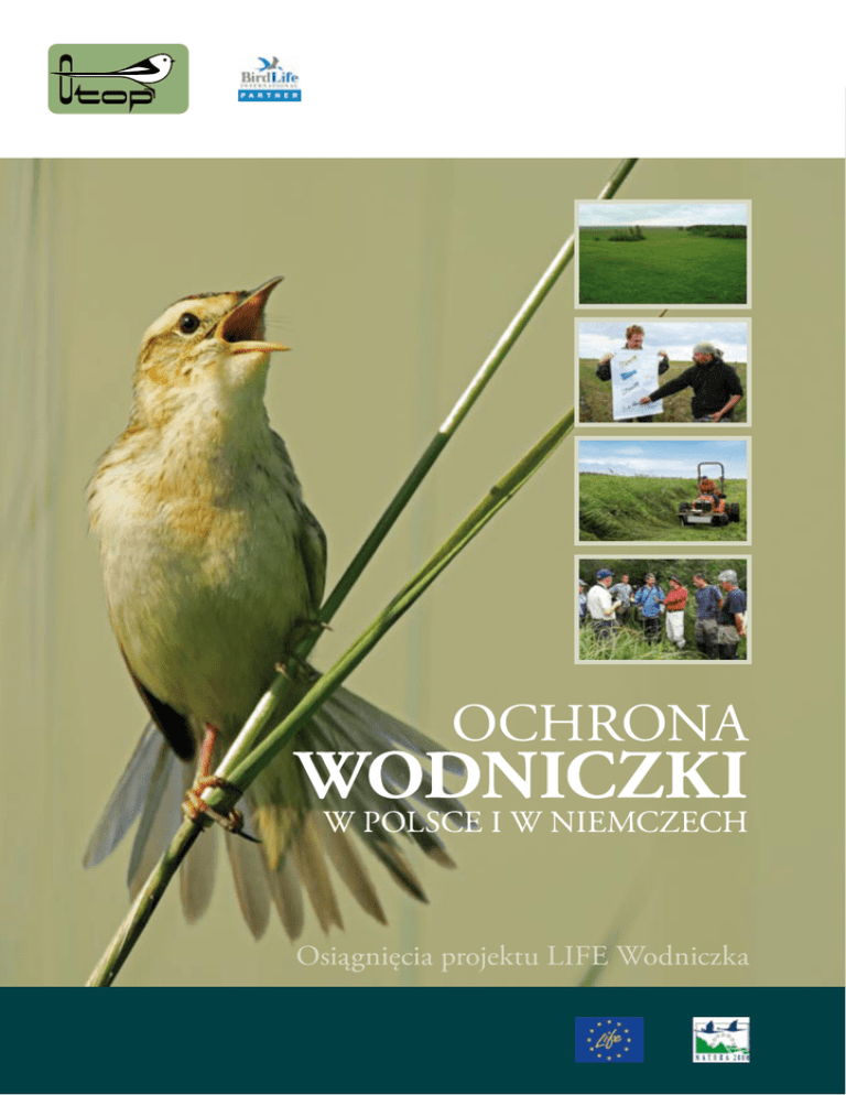 Osiągnięcia projektu LIFE Wodniczka 2 Wodniczka. Fot. Andrzej Kośmicki. Więcej informacji na temat Projektu LIFE Wodniczka oraz Projektu LIFE+ Wodniczka i biomasa, a także innych działań OTOP związanych z ochroną wodniczki w Polsce znaleźć można na stronie www.wodniczka.pl Ogólnopolskie Towarzystwo Ochrony Ptaków ul. Odrowąża 24 05-270 Marki tel. +48 22 761 82 05 fax +48 22 761 90 51 www.otop.org.pl Tekst: Magdalena Zadrąg, Paweł Szałański, Lars Lachmann Zdjęcia na okładce: Cezary Pióro (zdjęcie wodniczki) i Lars Lachmann (pozostałe) Projekt graficzny: WALENTYN Photography & Design 3 Projekt LIFE Wodniczka Przedstawiamy raport z osiągnięć projektu, który ma przybliżyć zainteresowanym przebieg i wyniki projektu „Ochrona wodniczki w Polsce i Niemczech” współfinansowanego przez Instrument Finansowy LIFE Komisji Europejskiej. Projekt LIFE Wodniczka rozpoczął się w roku 2005 i zakończył się w listopadzie 2011 roku. Dysponował budżetem wysokości 5,4 miliona euro. Był on największym do tej pory wykonanym projektem ochrony gatunkowej w Polsce. Głównym beneficjentem, odpowiedzialnym za koordynowanie projektu i wykonanie znacznej części działań projektu w Polsce było Ogólnopolskie Towarzystwo Ochrony Ptaków (OTOP). Oprócz niego za wdrażanie projektu odpowiedzialni są partnerzy projektu. Byli to: Zachodniopomorskie Towarzystwo Przyrodnicze (ZTP), Brytyjskie Królewskie Towarzystwo Ochrony Ptaków (The Royal Society for the Protection of Birds, RSPB), Polskie Towarzystwo Ochrony Ptaków (PTOP), Biebrzański Park Narodowy (BPN) oraz „Förderverein Naturschutz im Peenetal” z Niemiec. Projekt zajmował się ochroną wodniczki i jej siedlisk w 9 lokalizacjach: jednej w Niemczech, 6 w Pomorzu Zachodnim i 2 w Dolinie Biebrzy/Podlasie, o łącznej powierzchni 42 000 ha. Oprócz dofinansowania z Komisji Europejskiej projekt wspierany był przez dodatkowych sponsorów. Byli to: RSPB, Swarovski Optik oraz CEMEX Polska Sp. z o.o. 4 Dlaczego chronimy właśnie wodniczkę? Samiec wodniczki. Fot. Grzegorz Kłosowski. Wodniczka jest najrzadszym migrującym ptakiem śpiewającym Europy i jedynym w kontynentalnej Europie globalnie zagrożonym ptakiem wróblowym. W przeszłości występowała od Francji do Syberii i od Włoch do Łotwy, a obecnie jej zasięg jest znacznie ograniczony – prawie wyłącznie do Polski, Białorusi i Ukrainy. W ciągu XX wieku liczebność jej populacji zmniejszyła się o 95%, głównie z powodu zniszczenia jej specyficznego siedliska. Obecnie światowa populacja wodniczki liczy jedynie ok. 12 000 śpiewających samców, rzeczywiście zajęty areał występowania gatunku obejmuje obszar nie większy niż 375 km 2. W związku z tak ograniczonym zasięgiem występowania wodniczka znajduje się na Czerwonej Liście Gatunków Zagrożonych Międzynarodowej Unii Ochrony Przyrody (IUCN) w kategorii „narażone” (vulnerable). Na Polsce spoczywa wyjątkowa odpowiedzialność, gdyż około 25% światowej populacji wodniczki żyje właśnie w Polsce. Tak samo ważna wodniczka jest dla Niemiec, w których lęgła się dawniej licznie, a teraz może niestety niedługo stać się pierwszym od dawna gatunkiem, który z tego kraju zniknął. Chroniąc wodniczkę, chronimy jednocześnie jej siedliska, torfowiska niskie i ich bogate, a zagrożone florę i faunę. 5 Porozumienie o ochronie wodniczki W dniu 30 kwietnia 2003 roku w Mińsku/Białoruś utworzono Międzynarodowe Porozumienie o ochronie wodniczki pod auspicjami Konwencji Bońskiej o ochronie wędrownych gatunków dzikich zwierząt (CMS). Zostało ono później podpisane przez Polskę, Niemcy i prawie wszystkie inne kraje, w których wodniczka występuje w areale lęgowym, na migracji i na zimowisku, od Białorusi po Senegal. Jest to jedyne na świecie międzynarodowe porozumienie dotyczące ochrony tak małego ptaka. Państwa podpisujące Porozumienie zobowiązują się wspólnie pracować nad poprawą stanu ochrony wodniczki. Państwa te są wspierane przez dwóch dodatkowych sygnatariuszy: Sekretariat Konwencji Bońskiej oraz Towarzystwo BirdLife International, którego Grupa Ekspertów Ochrony Wodniczki (Aquatic Warbler Conservation Team, AWCT) pełni rolę doradczą porozumienia. Wodniczka – gatunek parasolowy Rybitwa białoskrzydła. Fot. Gerold Dobler. Kszyk. Fot. Lars Lachmann. Rycyk. Fot. Lars Lachmann. Storczyk. Fot. Lars Lachmann. Wodniczka jest tzw. gatunkiem parasolowym, reprezentującym siedlisko torfowisk niskich z zespołem gatunków zwierząt i roślin na nich żyjących. Wiele tych gatunków, tak jak wodniczka, nie może przetrwać nigdzie indziej niż na takich torfowiskach. Oznacza to, że chroniąc wodniczkę, chronimy znacznie więcej niż tylko jeden gatunek ptaka. Ochrona wodniczki jest korzystna także dla rzadkich gatunków roślin oraz innych gatunków ptaków, w tym rzadkich ptaków siewkowych. 6 Wodniczka z pokarmem. Fot. Zymantas Morkvenas. Samica wodniczki karmiąca pisklęta. Fot. Zydrunas Sinkevicius. Jak żyje wodniczka? Wodniczka jest niewielkim ptakiem wróblowym z rodziny trzciniaków. Ptak ma długi, ostry dziób, typowy dla ptaków odżywiających się owadami. Zarówno samiec, jak i samica ubarwione są jednakowo. Wodniczka zamieszkuje wyłącznie torfowiska niskie, i podobne, podmokłe, rozległe łąki torfowe porośnięte turzycą bez lub z nielicznymi krzewami. Woda powinna być powyżej gruntu, a najlepiej nie wyżej niż 10-15 cm. Wodniczka zakłada gniazda bezpośrednio na ziemi, w kępach roślinności lub martwych roślinach na ziemi, przez to tak bardzo ważny jest dla niej stały, wysoki poziom wody, na tyle wysoki, by mogła rosnąć odpowiednia roślinność i na tyle stały, by nagłe jego zmiany nie powodowały zatapiania gniazd. System rozrodczy wodniczki można określić jako unikatową w świecie ptaków odmianę promiskuityzmu. Wodniczki nie tworzą par i spotykają się właściwie tylko w czasie kopulacji, przy czym 