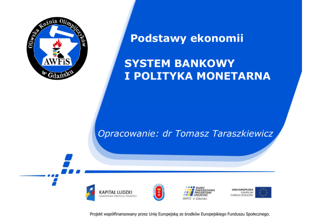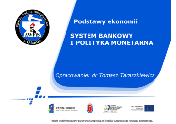Podstawy ekonomii SYSTEM BANKOWY I POLITYKA MONETARNA Opracowanie: dr Tomasz Taraszkiewicz Przegląd podstawowych definicji Bankowość: system instytucji finansowych „pompujących” fundusze od poŜyczkodawców do poŜyczkobiorców Bank: pośrednik finansowy, świadczący klientom usługi finansowe Rezerwy: fundusze lub aktywa, które bank utrzymuje w formie depozytów w banku centralnym Kredyt lombardowy: pieniądze pod zastaw np. papierów wartościowych, bonów skarbowych i obligacji rządowych Kredyt refinansowy: źródło zasilania banków w pieniądz, słuŜy głównie do finansowania inwestycji centralnych Kredyt redyskontowy: związany z obrotem wekslowym, przyjmowanie weksli handlowych do redyskonta Stopa procentowa nominalna: wartość stopy procentowej widniejącej w ofercie banków Stopa procentowa realna: = stopa procentowa nominalna – inflacja Stopa dyskontowa: stopa procentowa stosowana przez bank centralny przy udzielaniu poŜyczek bankom komercyjnym System rozrachunkowy: ogół porozumień, na mocy których wzajemne zobowiązania i naleŜności banków rozlicza się poprzez zestawienie wszystkich transakcji dokonywanych w danym okresie i dokonuje spłaty tylko zobowiązań netto, powstałych w rozliczeniach międzybankowych Płynność: szybkość i pewność, z jaką dana pozycja aktywów moŜe być z powrotem zamieniana na pieniądz w danym momencie Panika finansowa: automatycznie spełniająca się prognoza; konsumenci dochodzą do wniosku, Ŝe bank nie będzie zdolny do wypłacenia pieniędzy, więc wycofują swoje lokaty, a poniewaŜ bank nie przechowuje wszystkich pieniędzy, nie jest w stanie wszystkim wypłacić pełnych kwot wkładów Opracowano w oparciu o materiał źródłowy Rodzaje banków i syntetyczne ujęcie funkcji banku centralnego Rodzaje banków: - bank centralny obsługujący inne banki, - banki komercyjne obsługujące klientów instytucjonalnych i indywidualnych. Syntetyczne ujęcie funkcji banku centralnego: - Nadzór nad pracą banków komercyjnych (jest bankiem banków). - Emisja pieniądza (kreuje pieniądz i politykę pienięŜną). - Wydaje koncesje na działalność bankową. - Ustala zasady obsługi. - Ustala instrumenty polityki pienięŜnej. - Jest „księgowym” budŜetu (rozlicza dochody Państwa). Opracowano w oparciu o materiał źródłowy Instrumenty polityki monetarnej Banku Centralnego Instrumenty polityki monetarnej Banku Centralnego: - Stopy procentowe (bank centralny nie narzuca innym bankom oprocentowania, same ustalają stopę oprocentowania na podstawie stopy dyskontowej; jeśli przykładowo stopa dyskontowa wynosi 15%, to bank komercyjny ustali stopy procentowe powyŜej 15% zaleŜnie od konkurencji na rynku, - Polityka stopy dyskontowej (określanie poziomu oprocentowania kredytów udzielanych bankom komercyjnym) - Operacje otwartego rynku (sprzedawanie i kupowanie obligacji rządowych) - Rezerwy obowiązkowe - Kredyty refinansowe (pula pieniędzy, jaką mogą poŜyczać banki komercyjne od banku centralnego w celu zminimalizowania ryzyka lub uzupełnienia własnych środków i oddziaływania na rynku) - Perswazje monetarne (sugestie kierowane do banków, prognozy) - Kursy walut (wyŜszość jednej waluty nad druga i dochód z róŜnicy) - „Krzywe patrzenie” (zniechęcenie banków do zaciągania kredytów). Opracowano w oparciu o materiał źródłowy System organizacyjny Narodowego Banku Polskiego Opracowano w oparciu o materiał źródłowy Misja Narodowego Banku Centralnego Misja NBP - działanie na rzecz stabilności monetarnej i systemu finansowego, tworzenie podstaw długotrwałego rozwoju gospodarczego, utrzymywanie stabilnego poziomu cen, sprawowanie nadzoru bankowego, działanie na rzecz systemu płatniczego, promocja rozwoju bezpiecznej infrastruktury rynku finansowego, monitorowanie i analizowanie sytuacji na rynkach finansowych oraz sytuacji gospodarczej, - ścisła współpraca z instytucjami nadzorującymi pozostałe segmenty rynku finansowego. Opracowano w oparciu o materiał źródłowy Podstawowe organy NBP Podstawowe organy NBP 1. Prezes NBP jest powoływany przez Sejm na wniosek Prezydenta Rzeczypospolitej Polskiej, na 6-letnią kadencję. Jest on przewodniczącym Rady Polityki PienięŜnej, Zarządu NBP oraz Komisji Nadzoru Bankowego. 2. Rada Polityki PienięŜnej jest organem NBP, powołanym na mocy ustawy o Narodowym Banku Polskim z dnia 29 sierpnia 1997 r. W jej skład wchodzi 9 członków powoływanych po trzech przez Prezydenta, Sejm i Senat - oraz przewodniczący, którym jest Prezes NBP. Zadaniem Rady Polityki PienięŜnej jest coroczne ustalanie załoŜeń polityki pienięŜnej oraz podstawowych zasad jej realizacji. Rada ustala wysokość podstawowych stóp procentowych, określa zasady operacji otwartego rynku oraz ustala zasady i tryb naliczania i utrzymywania rezerwy obowiązkowej. Zatwierdza ona plan finansowy banku centralnego oraz sprawozdanie z działalności. 3. Zarząd kieruje działalnością NBP, podejmując uchwały w sprawach nie zastrzeŜonych w ustawie o NBP do wyłącznej kompetencji innych organów NBP. Jego podstawowym zadaniem jest realizacja uchwał Rady Polityki PienięŜnej, uchwalanie i realizowanie planu działalności NBP oraz wykonywanie zatwierdzonego przez RPP planu finansowego, a takŜe realizacja zadań z zakresu polityki kursowej i systemu płatniczego. Opracowano w oparciu o materiał źródłowy Podstawowe funkcje NBP Podstawowe funkcje banku centralnego – NBP 1. Bank emisyjny - jest jedyną instytucją mającą wyłączne prawo emitowania znaków pienięŜnych, będących prawnym środkiem płatniczym w Polsce. Narodowy Bank Polski określa wielkość emisji oraz moment wprowadzenia pieniądza gotówkowego do obiegu, za którego płynność odpowiada. Ponadto, organizuje on obieg pienięŜny i reguluje ilość pieniądza w obiegu. 2. Bank banków - NBP organizuje system rozliczeń pienięŜnych, prowadzi bieŜące rozrachunki międzybankowe i akty