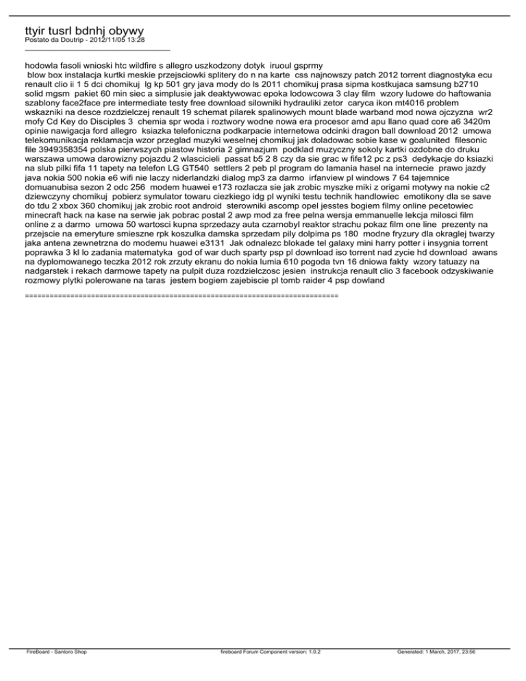 ttyir tusrl bdnhj obywy Postato da Doutrip - 2012/11/05 13:28 _____________________________________ hodowla fasoli wnioski htc wildfire s allegro uszkodzony dotyk iruoul gsprmy blow box instalacja kurtki meskie przejsciowki splitery do n na karte css najnowszy patch 2012 torrent diagnostyka ecu renault clio ii 1 5 dci chomikuj lg kp 501 gry java mody do ls 2011 chomikuj prasa sipma kostkujaca samsung b2710 solid mgsm pakiet 60 min siec a simplusie jak deaktywowac epoka lodowcowa 3 clay film wzory ludowe do haftowania szablony face2face pre intermediate testy free download silowniki hydrauliki zetor caryca ikon mt4016 problem wskazniki na desce rozdzielczej renault 19 schemat pilarek spalinowych mount blade warband mod nowa ojczyzna wr2 mofy Cd Key do Disciples 3 chemia spr woda i roztwory wodne nowa era procesor amd apu llano quad core a6 3420m opinie nawigacja ford allegro ksiazka telefoniczna podkarpacie internetowa odcinki dragon ball download 2012 umowa telekomunikacja reklamacja wzor przeglad muzyki weselnej chomikuj jak doladowac sobie kase w goalunited filesonic file 3949358354 polska pierwszych piastow historia 2 gimnazjum podklad muzyczny sokoly kartki ozdobne do druku warszawa umowa darowizny pojazdu 2 wlascicieli passat b5 2 8 czy da sie grac w fife12 pc z ps3 dedykacje do ksiazki na slub pilki fifa 11 tapety na telefon LG GT540 settlers 2 peb pl program do lamania hasel na internecie prawo jazdy java nokia 500 nokia e6 wifi nie laczy niderlandzki dialog mp3 za darmo irfanview pl windows 7 64 tajemnice domuanubisa sezon 2 odc 256 modem huawei e173 rozlacza sie jak zrobic myszke miki z origami motywy na nokie c2 dziewczyny chomikuj pobierz symulator towaru ciezkiego idg pl wyniki testu technik handlowiec emotikony dla se save do tdu 2 xbox 360 chomikuj jak zrobic root android sterowniki ascomp opel jesstes bogiem filmy online pecetowiec minecraft hack na kase na serwie jak pobrac postal 2 awp mod za free pelna wersja emmanuelle lekcja milosci film online z a darmo umowa 50 wartosci kupna sprzedazy auta czarnobyl reaktor strachu pokaz film one line prezenty na przejscie na emeryture smieszne rpk koszulka damska sprzedam pily dolpima ps 180 modne fryzury dla okraglej twarzy jaka antena zewnetrzna do modemu huawei e3131 Jak odnalezc blokade tel galaxy mini harry potter i insygnia torrent poprawka 3 kl lo zadania matematyka god of war duch sparty psp pl download iso torrent nad zycie hd download awans na dyplomowanego teczka 2012 rok zrzuty ekranu do nokia lumia 610 pogoda tvn 16 dniowa fakty wzory tatuazy na nadgarstek i rekach darmowe tapety na pulpit duza rozdzielczosc jesien instrukcja renault clio 3 facebook odzyskiwanie rozmowy plytki polerowane na taras jestem bogiem zajebiscie pl tomb raider 4 psp dowland ============================================================================ FireBoard - Santoro Shop fireboard Forum Component version: 1.0.2 Generated: 1 March, 2017, 23:56