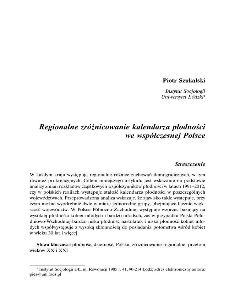 Regionalne zróżnicowanie kalendarza płodności we współczesnej