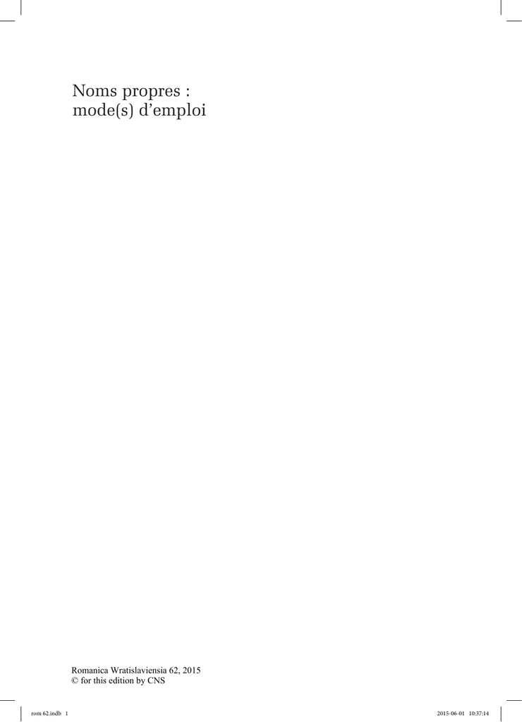 Noms propres : mode(s) d`emploi - Romanica Wratislaviensia
