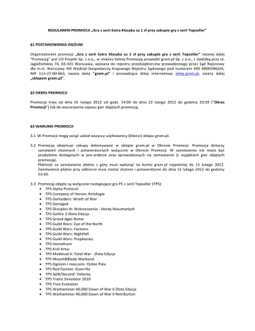 REGULAMIN PROMOCJI „Gra z serii Extra Klasyka za 1 zł przy zakupie gry z serii Topseller”