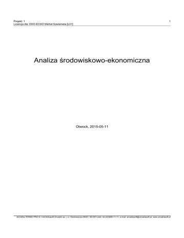 Projekt: 1 Licencja dla: EKO-ECHO Michał Szeremeta [L01] 1 Analiza środowiskowo-ekonomiczna Otwock, 2015-05-11 ArCADia-TERMO PRO 6.1 ArCADiasoft Chudzik sp. j. ul. Sienkiewicza 85/87, 90-057 Łódź, tel (42)689-11-11, e-mail: [email protected], www.arcadiasoft.pl Projekt: 1 Licencja dla: EKO-ECHO Michał Szeremeta [L01] 2 Spis treści: 1. Dane budynku 2. Opis systemów zapotrzebowania w energię do analizy porównawczej 3. Wykresy porównawcze zużycia nośników energii 4. Emisja zanieczyszczeń poszczególnych systemów w budynku 5. Obliczenia optymalizacyjno-porównawcze kosztów eksploatacyjnych i inwestycyjnych systemu przygotowania ciepłej wody 6. Zestawienie kosztów inwestycyjno - eksploatacyjnych za okres 10.00 lat ArCADia-TERMO PRO 6.1 ArCADiasoft Chudzik sp. j. ul. Sienkiewicza 85/87, 90-057 Łódź, tel (42)689-11-11, e-mail: [email protected], www.arcadiasoft.pl Projekt: 1 Licencja dla: EKO-ECHO Michał Szeremeta [L01] 3 1. Dane budynku Przeznaczenie budynku: Szkolno-oświatowe Strefa klimatyczna: III Stacja meteorologiczna: Warszawa - Okęcie Powierzchnia zabudowy Az=262,00 m 2 Powierzchnia o regulowanej temperaturze Af=243,50 m Powierzchnia netto A=243,50 m 2 2 Kubatura ogrzewana budynku V=1130,00 m 3 Liczba kondygnacji: 1 ArCADia-TERMO PRO 6.1 ArCADiasoft Chudzik sp. j. ul. Sienkiewicza 85/87, 90-057 Łódź, tel (42)689-11-11, e-mail: [email protected], www.arcadiasoft.pl Projekt: 1 Licencja dla: EKO-ECHO Michał Szeremeta [L01] 4 2. Opis systemów zapotrzebowania w energię do analizy porównawczej Lp. Nazwa systemu Wariant projektowany Wariant alternatywny 1 System ogrzewania TAK, Źródło 'Nowe źródło ogrzewania' o udziale procentowym 100,00 % na paliwo Paliwo - gaz ziemny o wH=1,10, typu Kotły gazowe kondensacyjne do 50kW o (55/45 C) o sprawności wytwarzania H,g=0,97, Ogrzewanie wodne z grzejnikami członowymi lub płytowymi z regulacją centralną adaptacyjną i miejscową o sprawności regulacji H,e=0,98, C.o. wodne z źródłem w budynku, z zaizolowanymi przewodami, armaturą i urządzeniami w pom. ogrzewanych o sprawności przesyłu H,d=0,97, Bufor w systemie grzewczym o parametrach 55/45 oC wewnątrz osłony termicznej budynku o sprawności akumulacji H,s=0,97. TAK, Źródło o udziale procentowym 100,00 % na paliwo Energia elektryczna system PV, typu Pompy ciepła powietrze/woda w nowych budynkach o sprawności wytwarzania H,g=2,70, Ogrzewanie wodne z grzejnikami członowymi lub płytowymi z regulacją centralną adaptacyjną i miejscową o sprawności regulacji H,e=0,98, C.o. wodne z źródłem w budynku, z zaizolowanymi przewodami, armaturą i urządzeniami w pom. ogrzewanych o sprawności przesyłu H,d=0,97, Brak zasobnika buforowego o sprawności akumulacji H,s=1,00. 2 System wentylacji TAK, z przewagą wentylacji typu 'Wentylacja grawitacyjna' TAK, z przewagą wentylacji typu 'Wentylacja grawitacyjna' System ciepłej wody TAK, Źródło 'Nowe źródło ciepłej wody' o udziale procentowym 100,00 % na paliwo Paliwo - gaz ziemny o wW=1,10, typu Kotły gazowe kondensacyjne o mocy do 50 kW o sprawności wytwarzania W,g=0,88, Centralne przygotowanie c.w.u., instalacja z cyrkulacją i pełną izolacją przewodów o sprawności przesyłu W,d=0,70, Brak zasobnika o sprawności akumulacji W,s=1,00. TAK, Źródło o udziale procentowym 100,00 % na paliwo Energia elektryczna system PV, typu Elektryczny podgrzewacz akumulacyjny (z zasobnikiem bez strat) o sprawności wytwarzania W,g=0,98, Centralne przygotowanie c.w.u., instalacja z cyrkulacją i zaizolowanymi przewodami bez pionów o sprawności przesyłu W,d=0,60, Brak zasobnika o sprawności akumulacji W,s=1,00. 3 ArCADia-TERMO PRO 6.1 ArCADiasoft Chudzik sp. j. ul. Sienkiewicza 85/87, 90-057 Łódź, tel (42)689-11-11, e-mail: [email protected], www.arcadiasoft.pl Projekt: 1 Licencja dla: EKO-ECHO Michał Szeremeta [L01] 5 3. Wykresy porównawcze zużycia nośników energii Wykres zużycia nośników energii dla wszystkich systemów w budynku projektowanym ArCADia-TERMO PRO 6.1 ArCADiasoft Chudzik sp. j. ul. Sienkiewicza 85/87, 90-057 Łódź, tel (42)689-11-11, e-mail: [email protected], www.arcadiasoft.pl Projekt: 1 Licencja dla: EKO-ECHO Michał Szeremeta [L01] 6 Wykres zużycia nośników energii dla wszystkich systemów w budynku ze źródłami alternatywnymi ArCADia-TERMO PRO 6.1 ArCADiasoft Chudzik sp. j. ul. Sienkiewicza 85/87, 90-057 Łódź, tel (42)689-11-11, e-mail: [email protected], www.arcadiasoft.pl Projekt: 1 Licencja dla: EKO-ECHO Michał Szeremeta [L01] 7 Wykres porównawczy zużycia nośników energii dla wszystkich systemów w budynku ArCADia-TERMO PRO 6.1 ArCADiasoft Chudzik sp. j. ul. Sienkiewicza 85/87, 90-057 Łódź, tel (42)689-11-11, e-mail: [email protected], www.arcadiasoft.pl Projekt: 1 Licencja dla: EKO-ECHO Michał Szeremeta [L01] 8 4. Emisja zanieczyszczeń poszczególnych systemów w budynku 4.1. Budynek projektowany System Jedn. SO2 NOX CO CO2 PYŁ SADZA B-a-P System ogrzewania i wentylacji kg/rok 1,6380 2,1681 0,6175 2871,459 5 0,2906 0,0005 0,0000 System przygotowania ciepłej wody kg/rok 0,3322 0,1985 0,0574 212,2665 0,0561 0,0001 0,0000 Jedn. SO2 NOX CO CO2 PYŁ SADZA B-a-P kg/rok 1,9702 2,3666 0,6749 3083,726 0 0,3466 0,0006 0,0000 Całkowita emisja w budynku 4.2. Budynek z alternatywnymi źródłami System Jedn. SO2 NOX CO CO2 PYŁ SADZA B-a-P System ogrzewania i wentylacji kg/rok 44,9654 11,3649 3,4095 4941,252 7 7,4119 0,0133 0,0003 System przygotowania ciepłej wody kg/rok 0,3322 0,1985 0,0574 212,2665 0,0561 0,0001 0,0000 Jedn. SO2 NOX CO CO2 PYŁ SADZA B-a-P kg/rok 45,2975 11,5634 3,4669 5153,519 2 7,4680 0,0134 0,0003 Całkowita emisja w budynku ArCADia-TERMO PRO 6.1 ArCADiasoft Chudzik sp. j. ul. Sienkiewicza 85/87, 90-057 Łódź, tel (42)689-11-11, e-mail: [email protected], www.arcadiasoft.pl Projekt: 1 Licencja dla: EKO-ECHO Michał Szeremeta [L01] 9 5. Obliczenia optymalizacyjno-porównawcze kosztów eksploatacyjnych i inwestycyjnych systemu przygotow